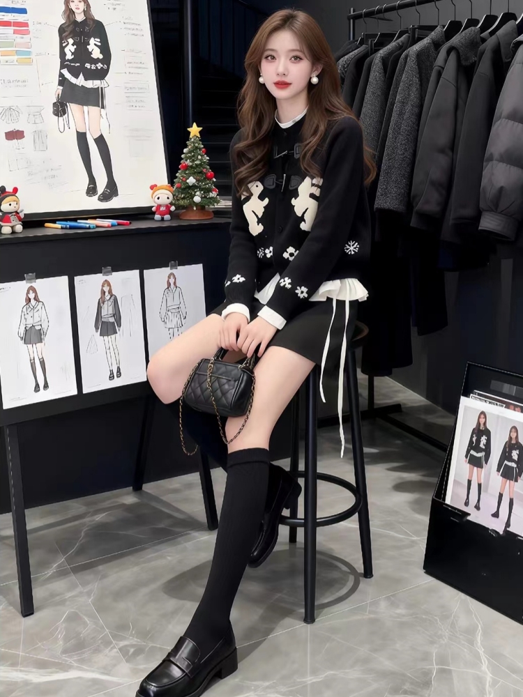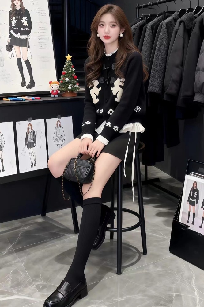 FA52166# 韩系慵懒风软糯毛衣外套女秋冬新款显瘦针织开衫上衣短裙套装 服裝批發女裝批發服飾貨源