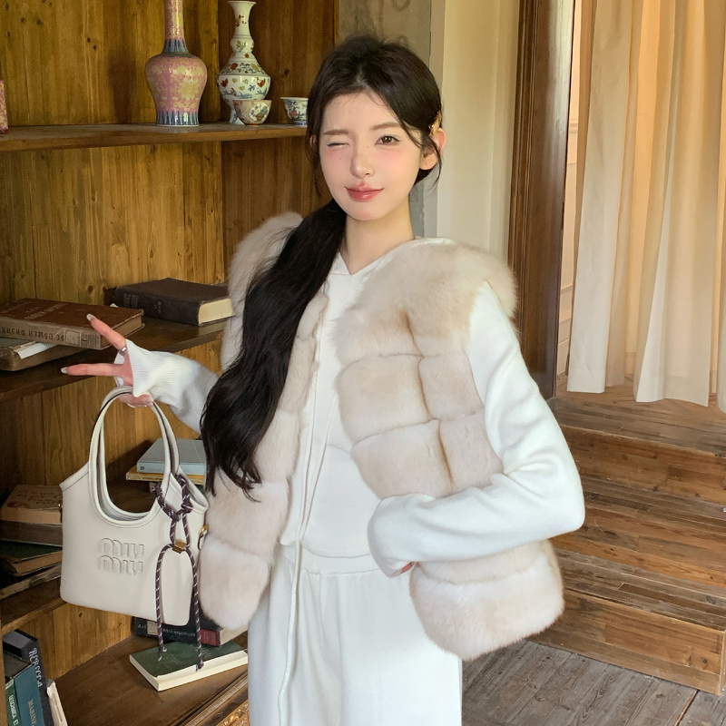 FA52176# 冬季韩版新款年轻版进口沙金狐狸毛皮草马甲女环保毛毛马甲外套 服裝批發女裝批發服飾貨源