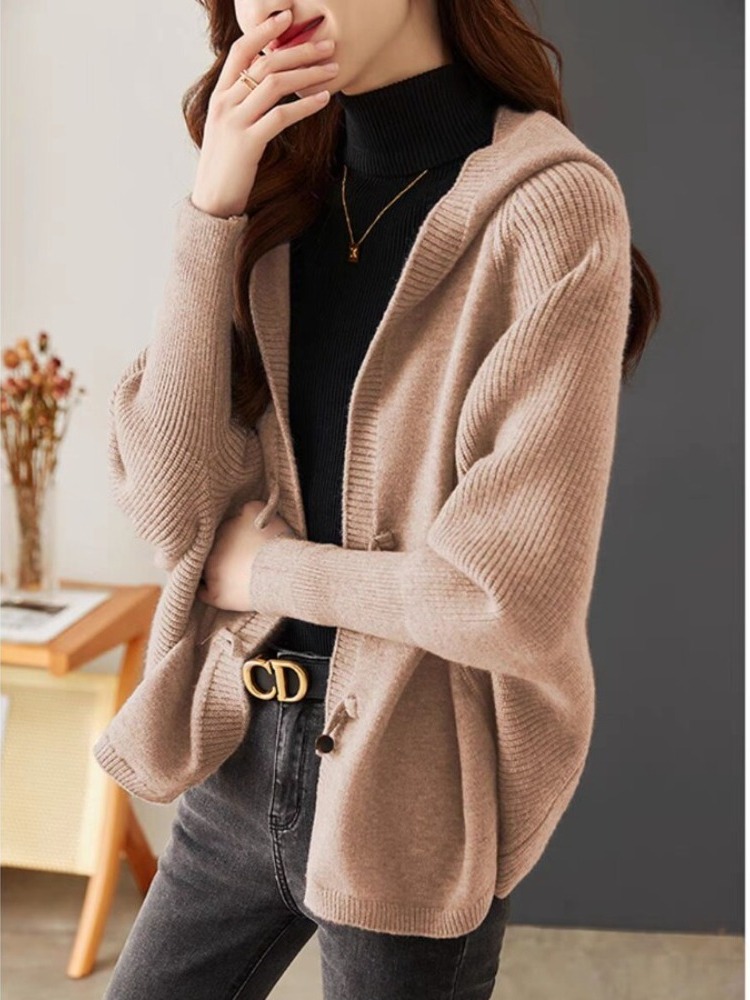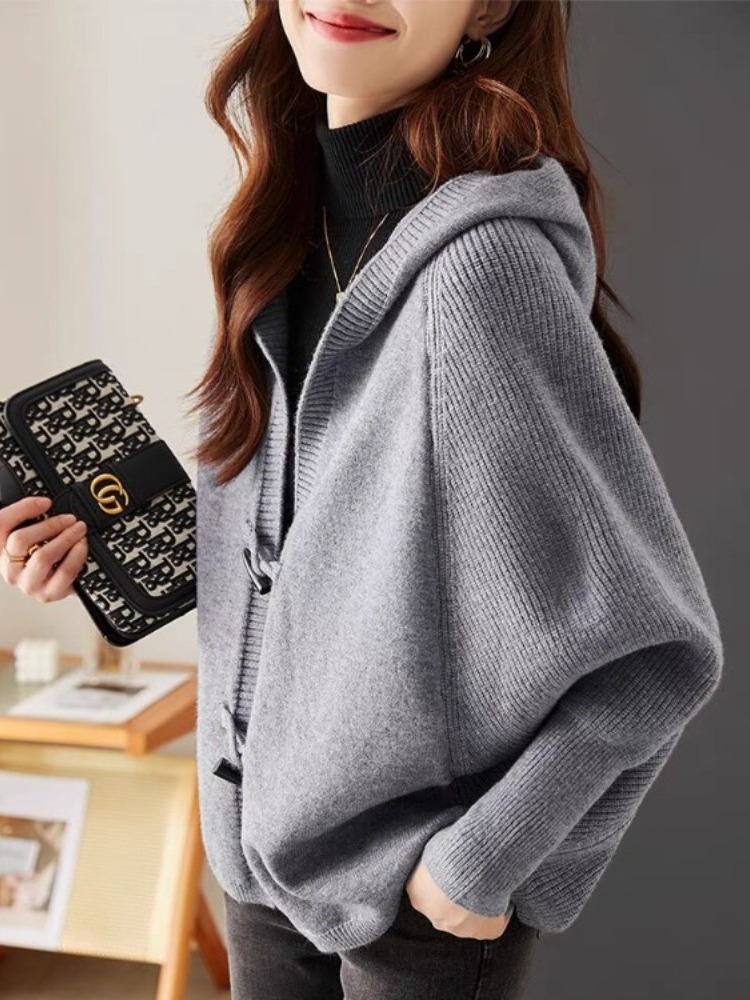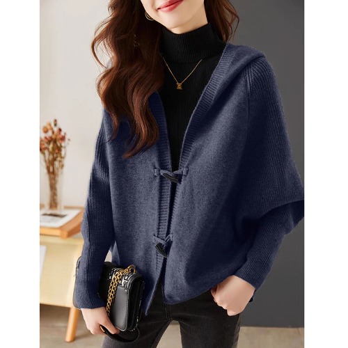 FA53052# 毛衣开衫外套女秋冬气质时尚牛角扣高级感蝙蝠袖宽松外搭针织上衣 服裝批發女裝批發服飾貨源