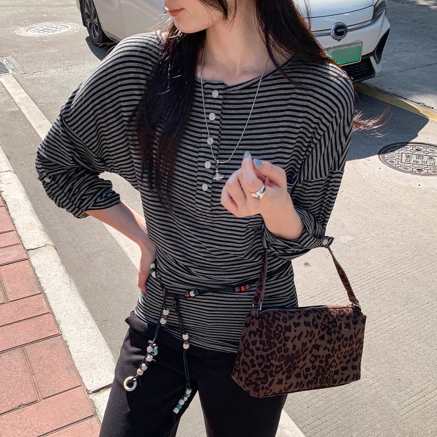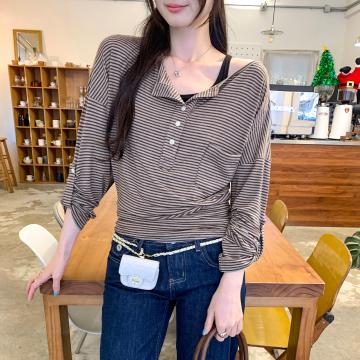 FA53081# 图半开领打底衫T恤女秋冬新款内搭高级感可外穿条纹上衣 服裝批發女裝批發服飾貨源