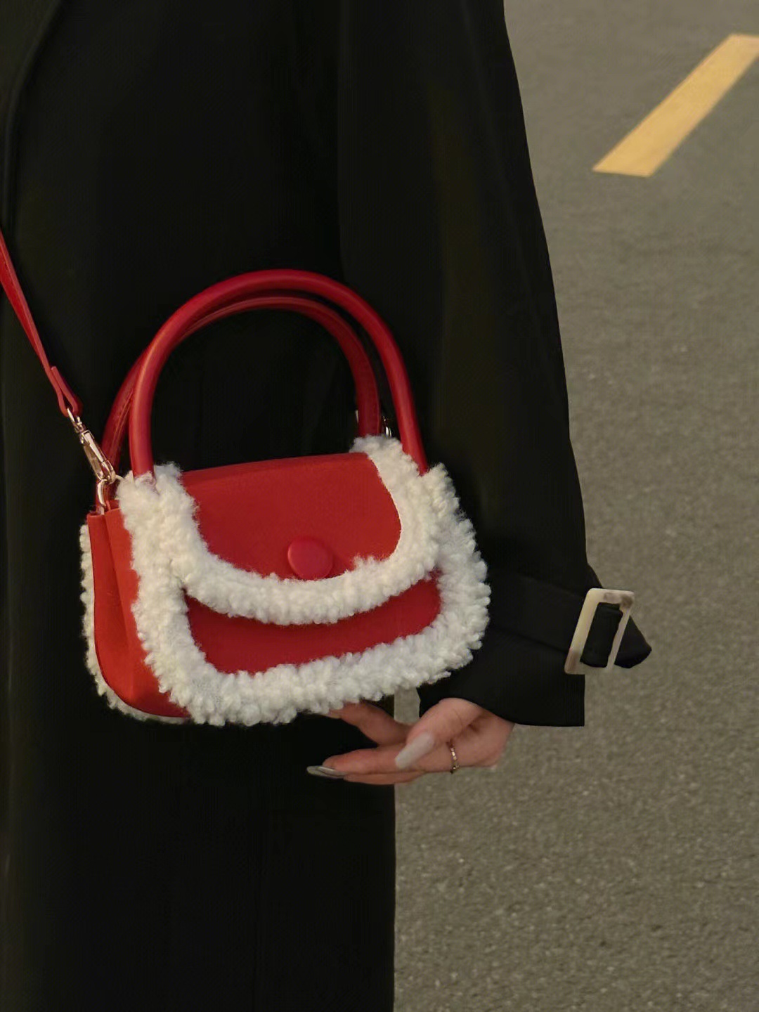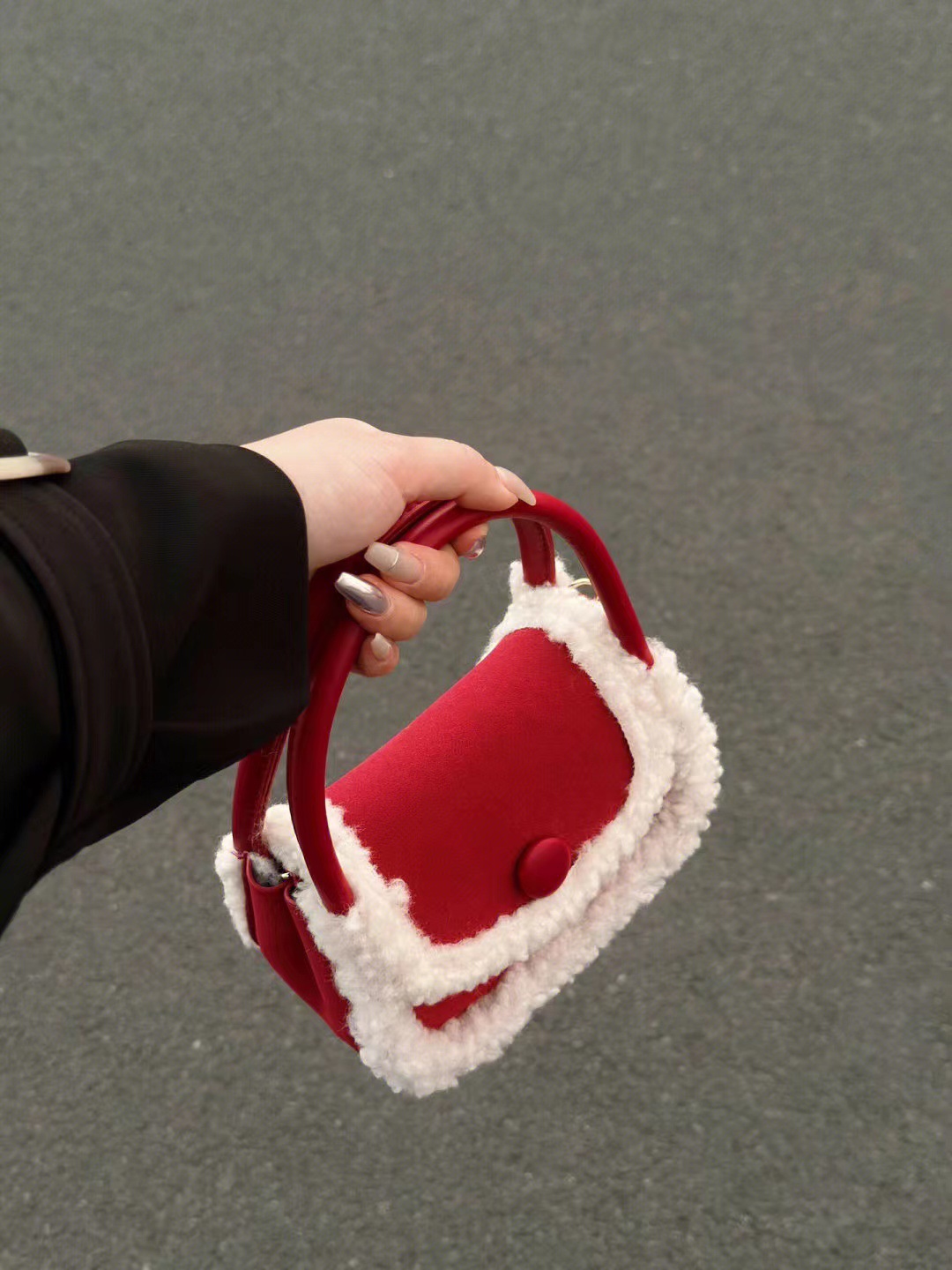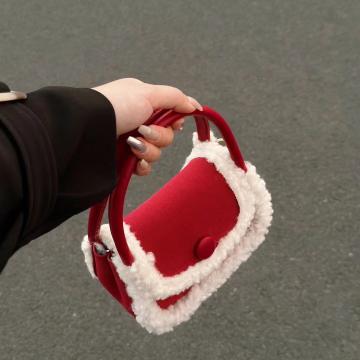 TJ2237# 毛绒包包女秋冬2025新款潮复古韩国手提小方包百搭ins单肩斜挎包