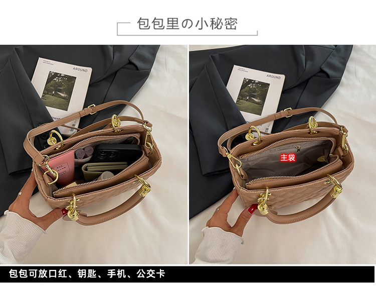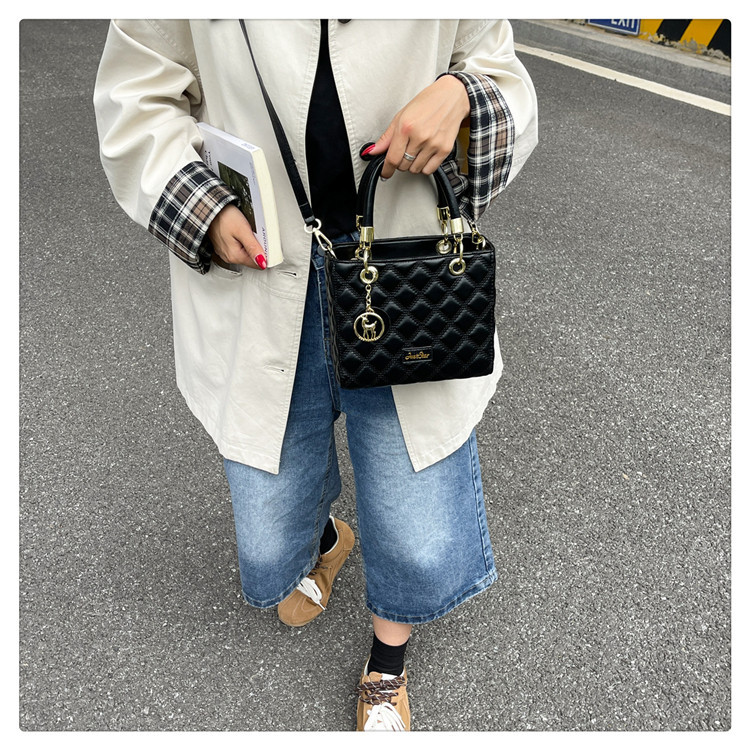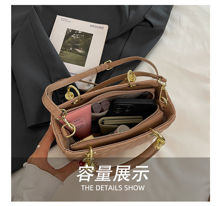 TJ2231# 跨境菱格绣线手提包包女2025新款流行时尚单肩斜挎包质感戴妃女包