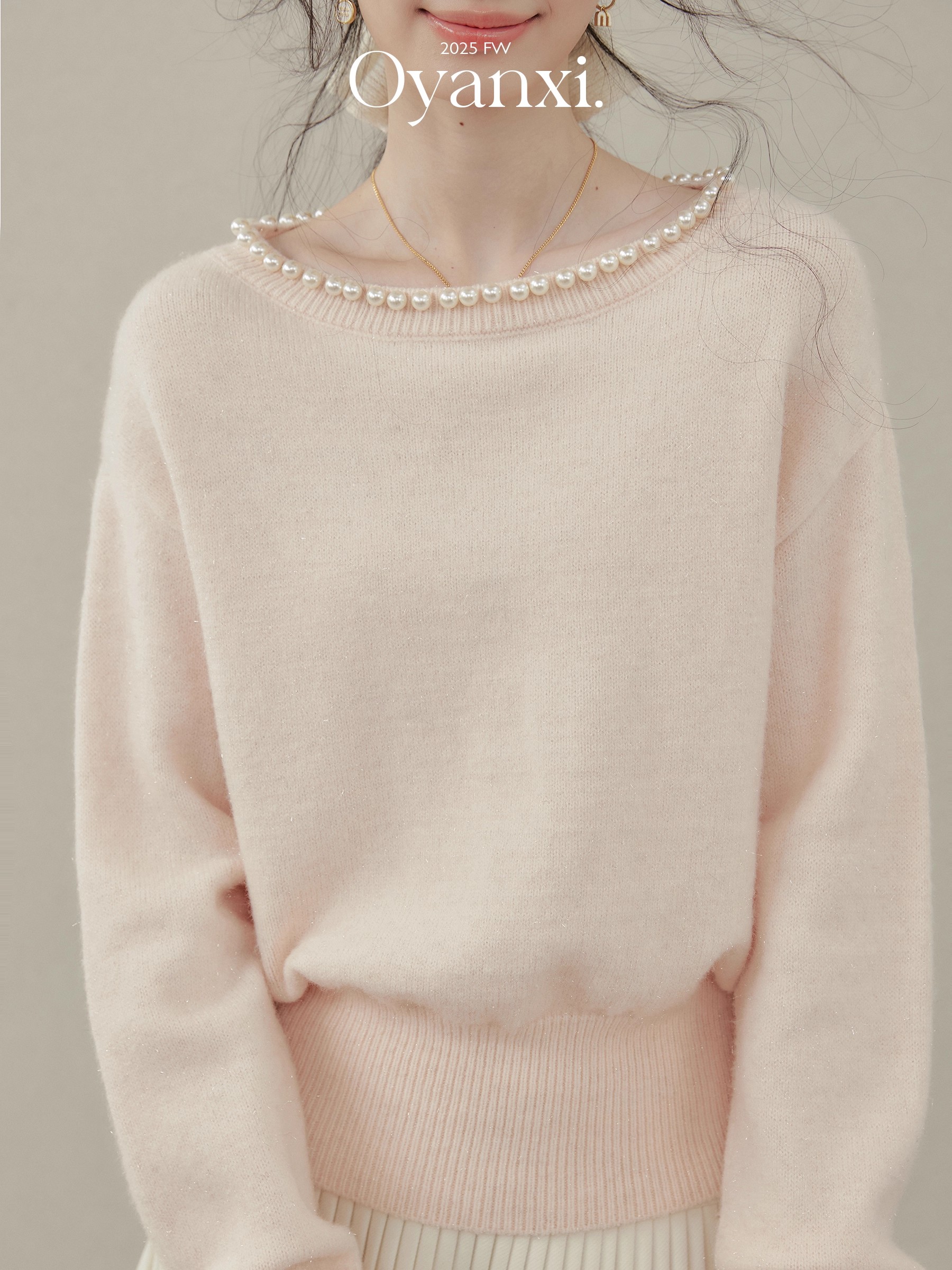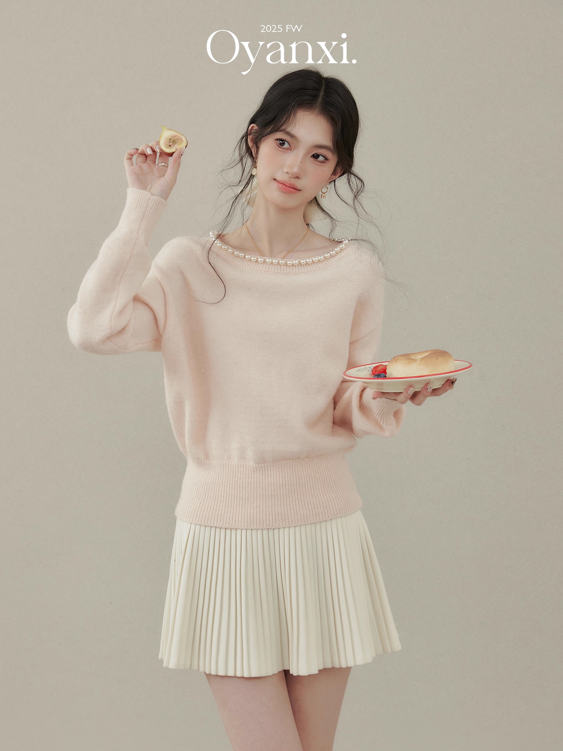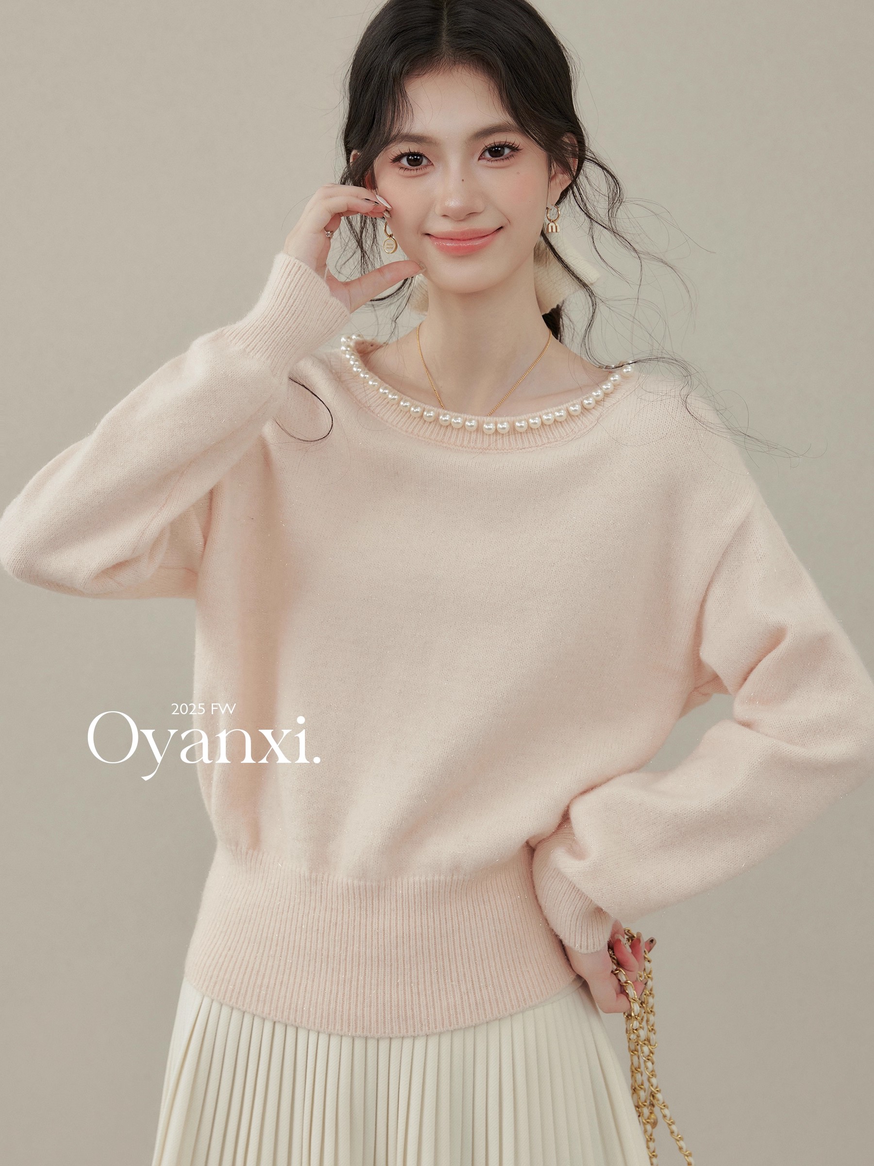 Home > 毛衣、针织衫 > FA53146# 欧阳喜甜巧布朗尼秋冬季粉色珍珠领圆领针织衫女新款上衣 服裝批發女裝批發服飾貨源