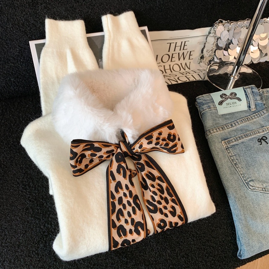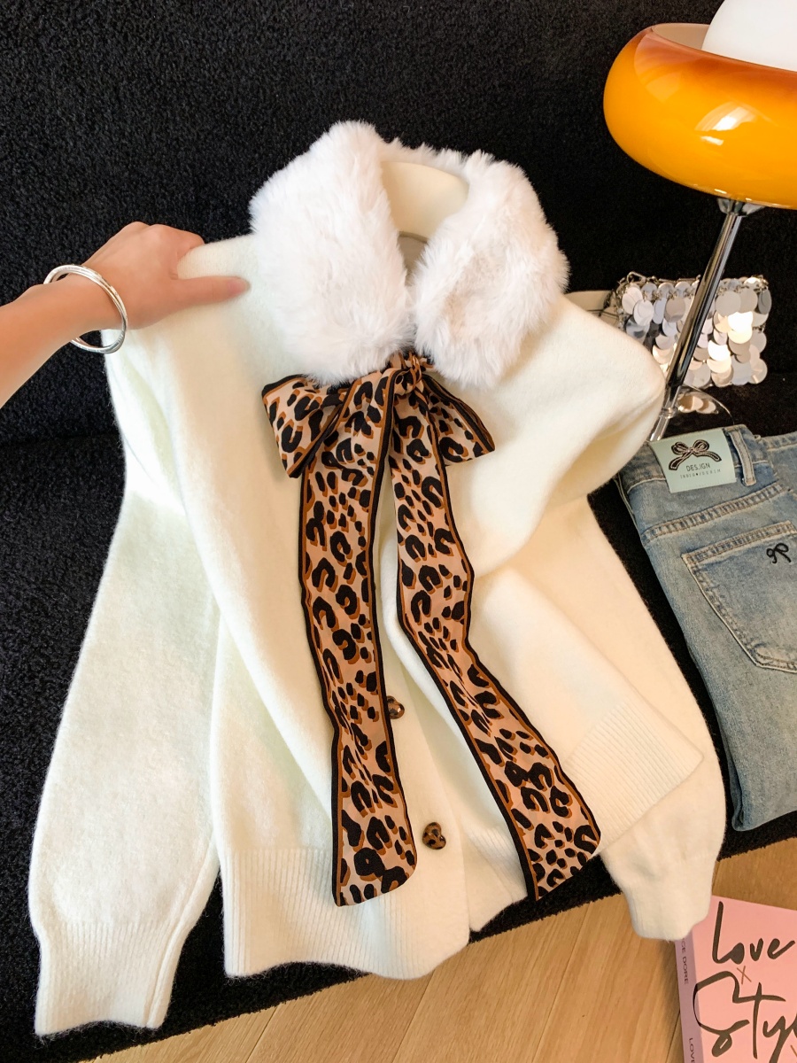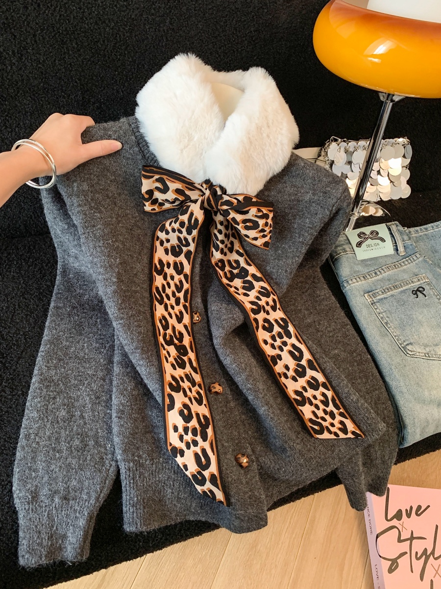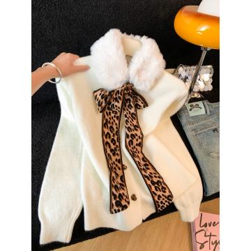 FA53188# 新年穿搭可拆卸豹纹丝巾围脖毛衣开衫女冬季独特减龄气质显瘦上衣 服裝批發女裝批發服飾貨源