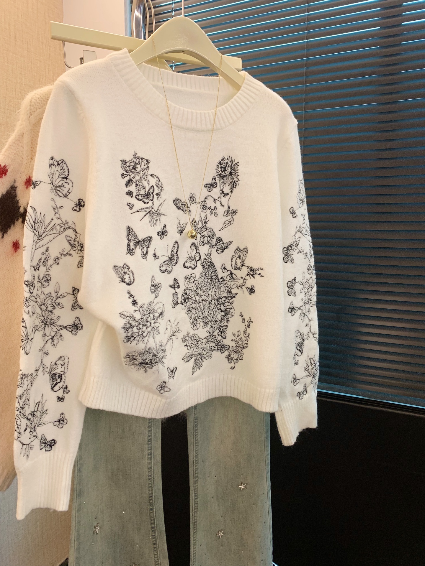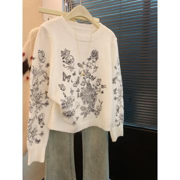 FA53401# 上温柔慵懒蝴蝶提花针织衫女冬季长袖圆领宽松高级上衣 服裝批發女裝批發服飾貨源