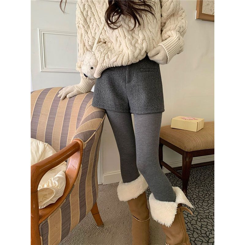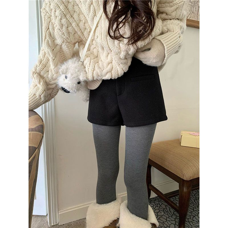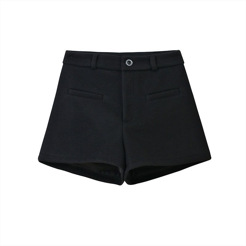 FA53554# 黑色毛呢包臀短裤女秋冬季新款辣妹外穿a字厚款韩系高腰靴裤