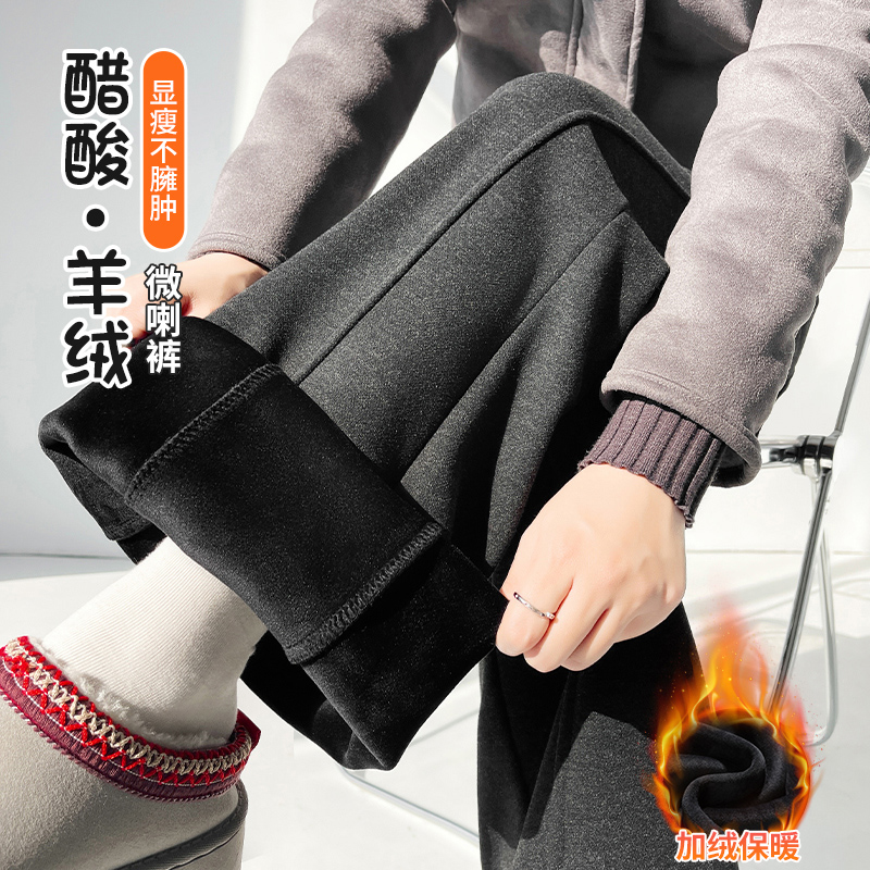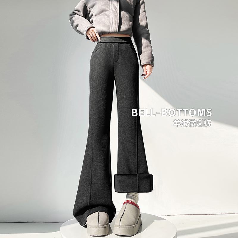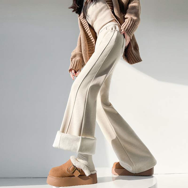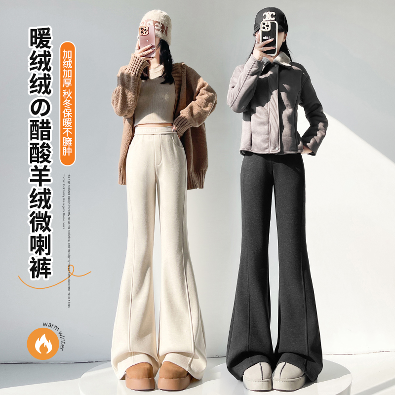 Home > 牛仔裤、长裤 > FA53581# 加绒微喇裤女秋冬新款高腰垂感显瘦直筒卫裤羊绒糯米裤加厚喇叭裤