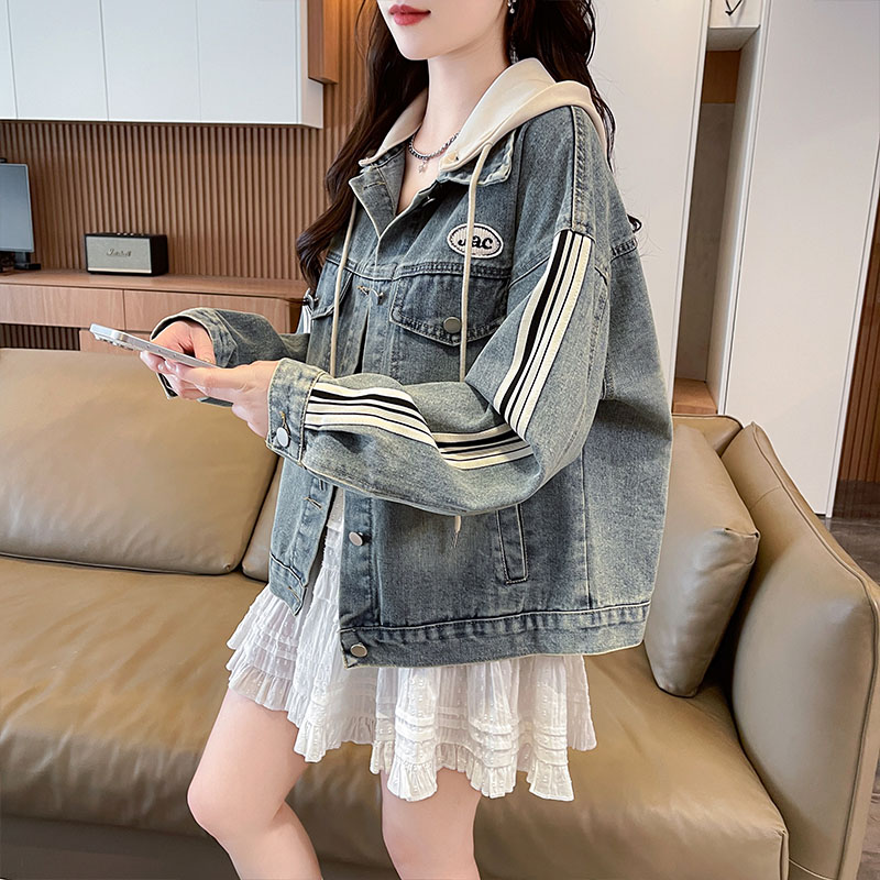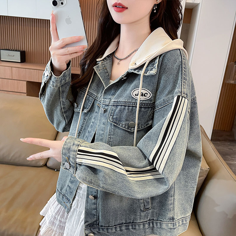 FA53625# 牛仔外套女春秋季新款高级感小个子高腰显瘦短款夹克带帽上衣
