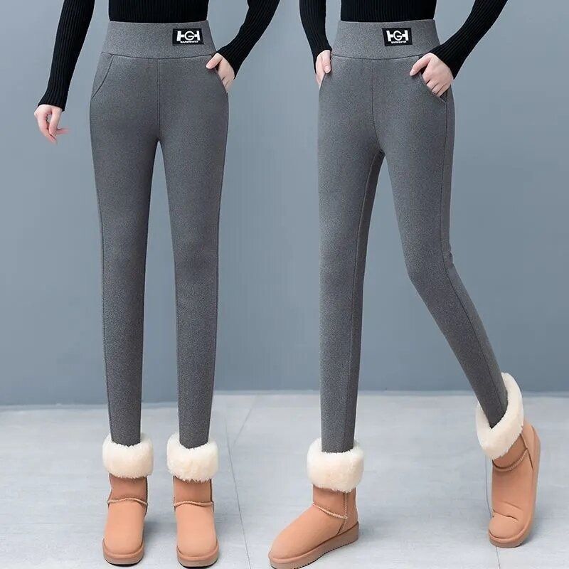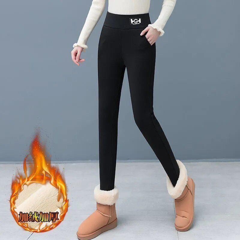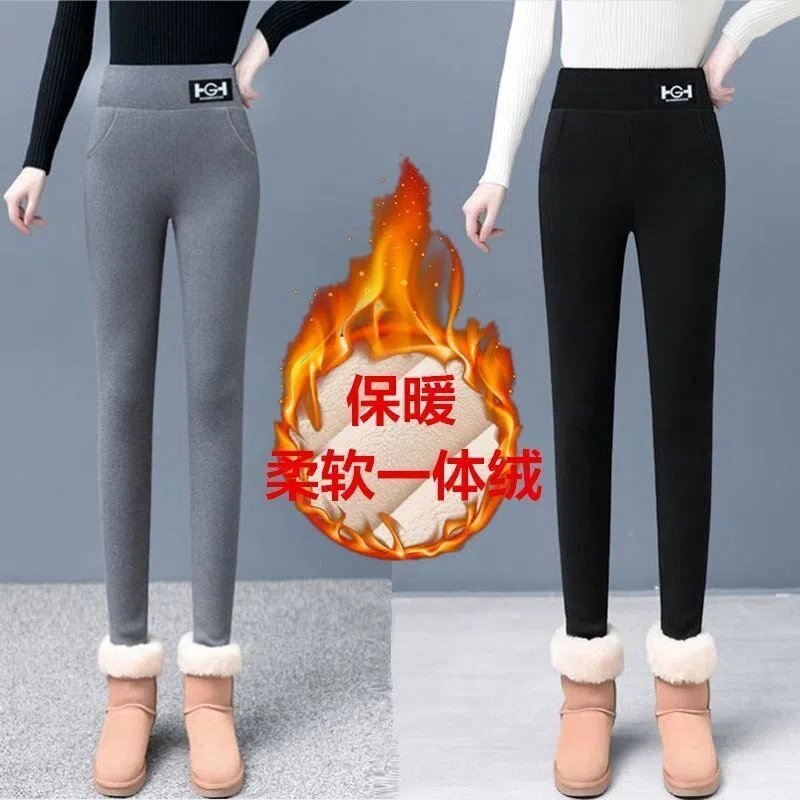 LN76426# 加绒加厚羊羔绒打底裤女秋冬装外穿高腰小脚裤紧身弹力保暖裤