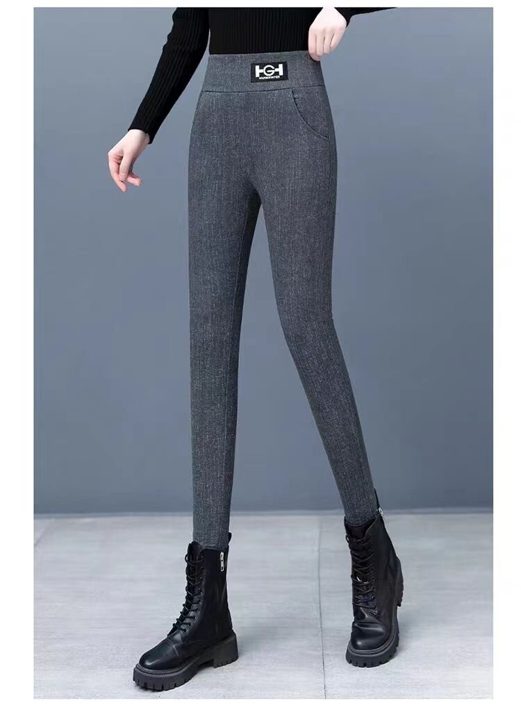LN76427# 仿牛仔色裤子女秋冬季爆款打底裤女外穿加绒加厚女士小脚保暖棉裤