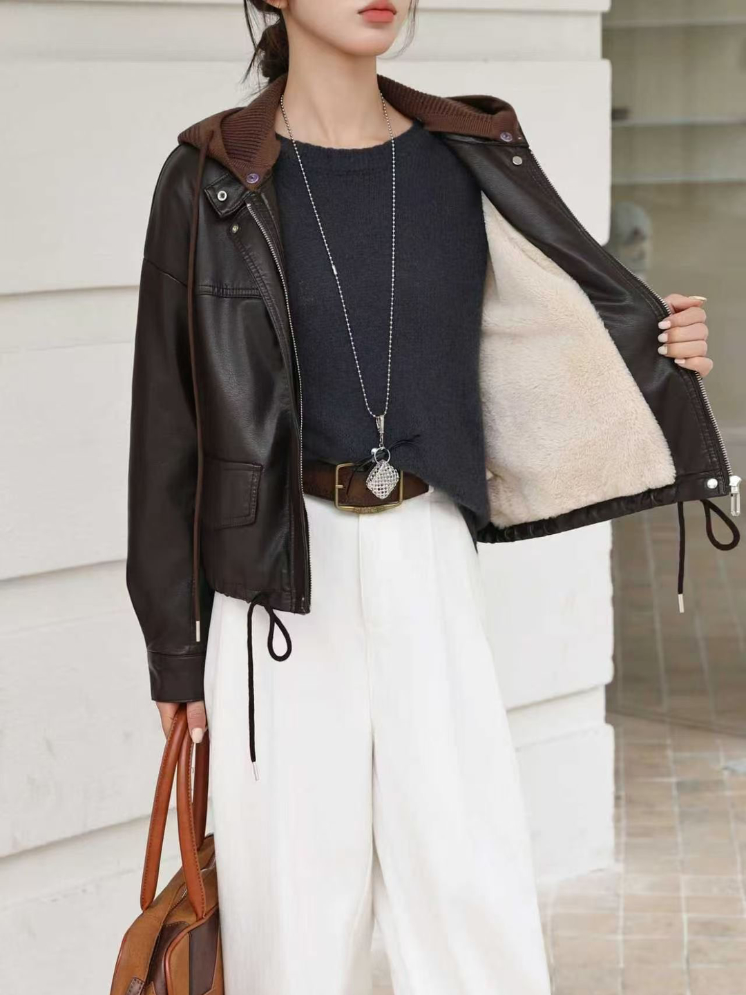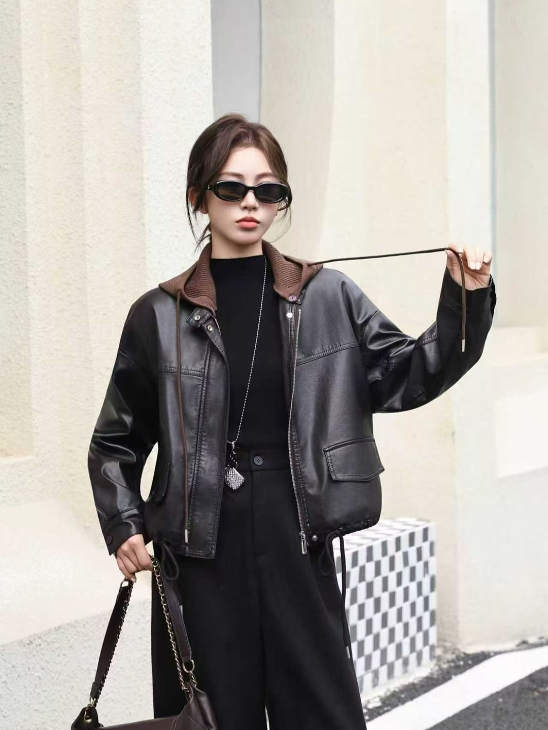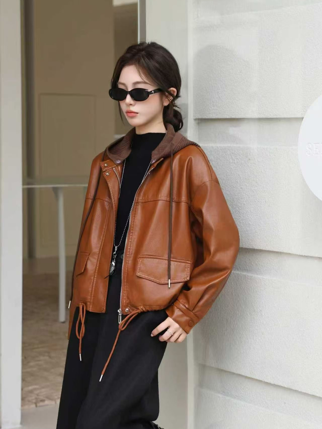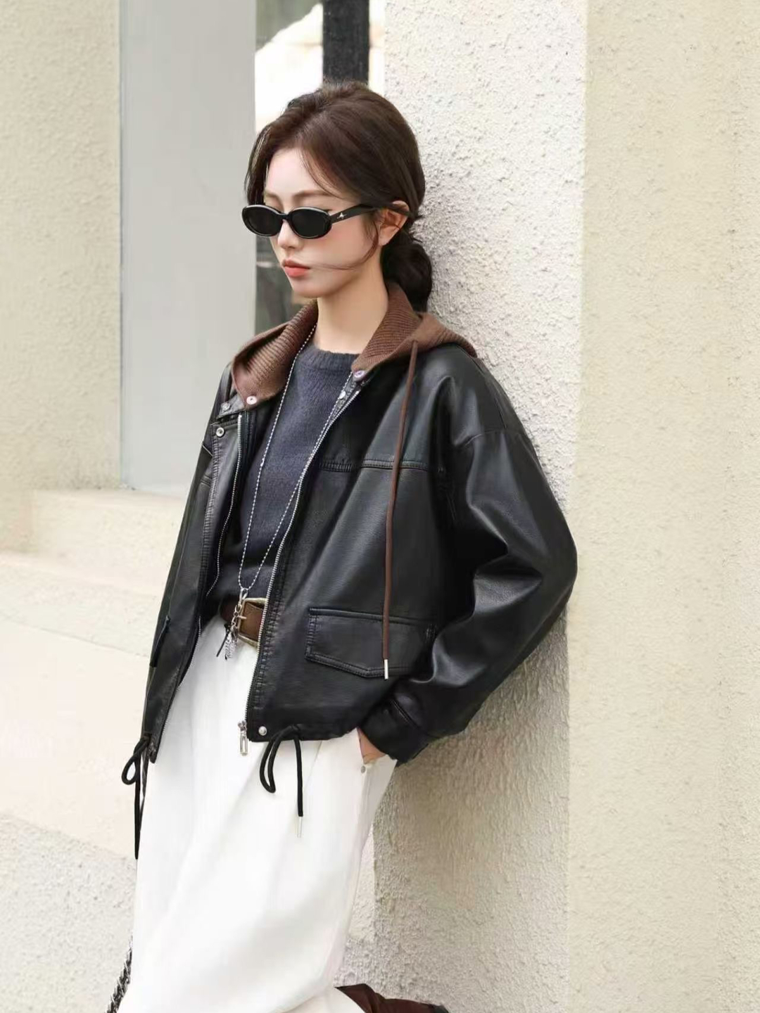 Home > 风衣、西装外套 > FA54306# 美拉德加绒加厚蛋白PU皮衣外套女酷飒可脱卸帽休闲复古机车皮夹克 服裝批發女裝批發服飾貨源
