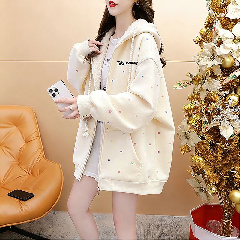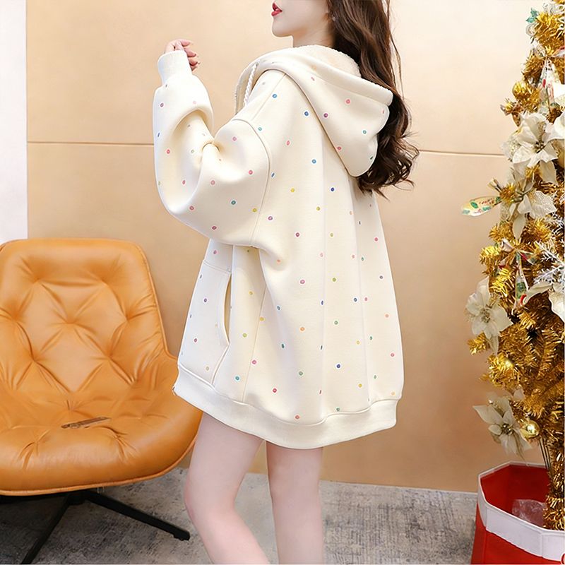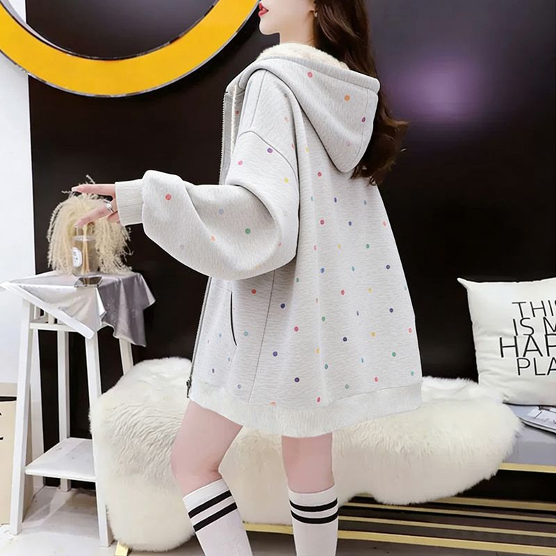 FA54406# 华棉薄款复牛奶丝秋冬季宽松波点连帽外套 服裝批發女裝批發服飾貨源