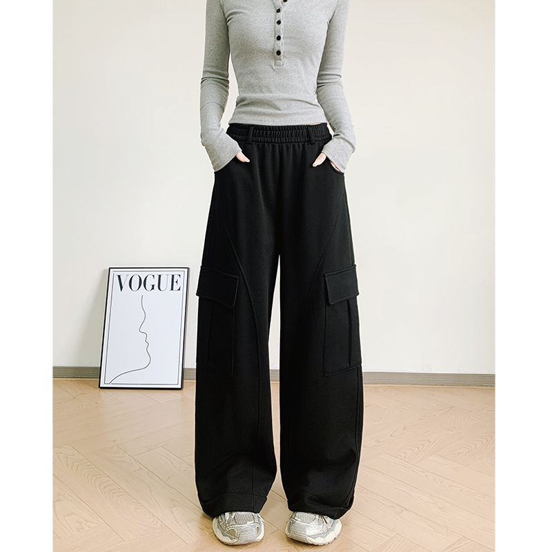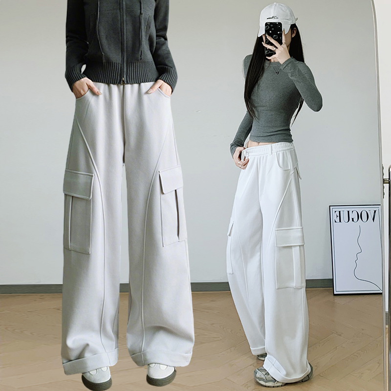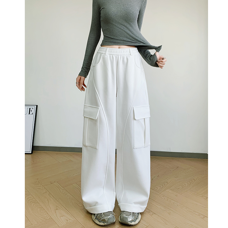 FA54432# 春工装裤哈伦束脚高腰棉裤休闲中裤松紧腰薄款百褶运动 服裝批發女裝批發服飾貨源