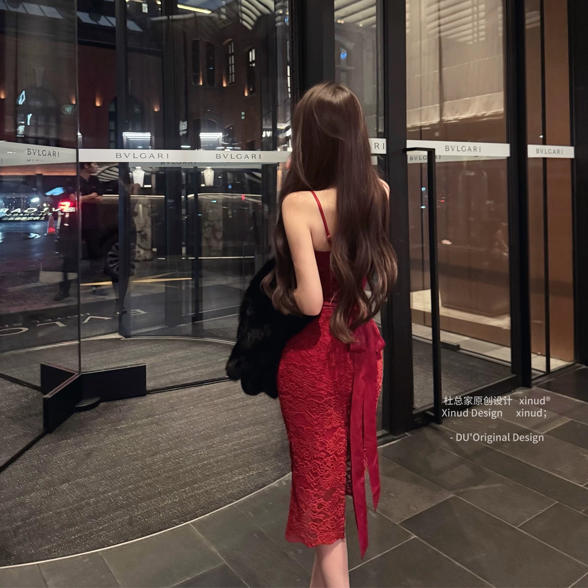 红色 吊带连衣裙