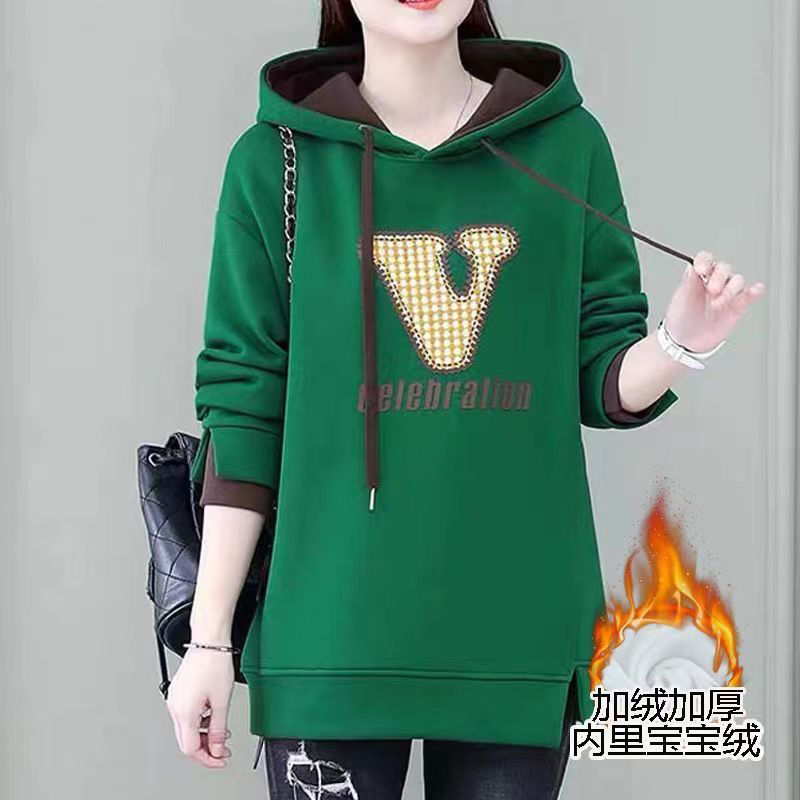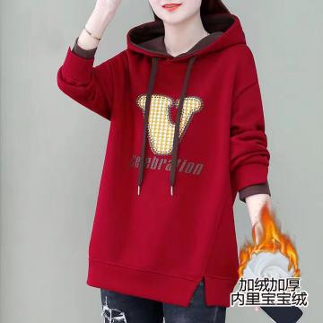 FA54752# 秋冬季新款女士卫衣加绒加厚中长款爆款时尚洋气遮屁股连帽 服裝批發女裝批發服飾貨源