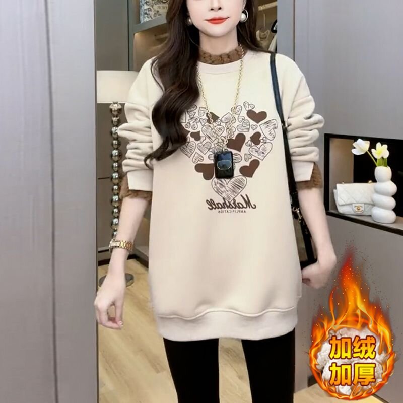 FA54755# 华棉冬季时尚拼接假两件上衣日常易穿搭加绒加厚卫衣 服裝批發女裝批發服飾貨源
