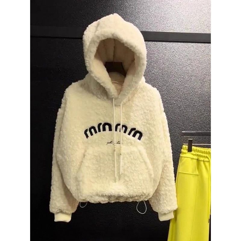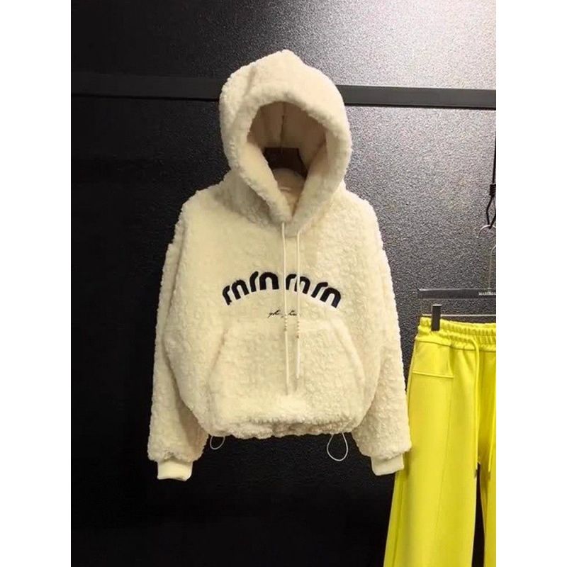 FA54765# 原版韩系高级感超厚羊羔毛连帽卫衣女冬季新款百搭保暖毛绒上衣潮 服裝批發女裝批發服飾貨源