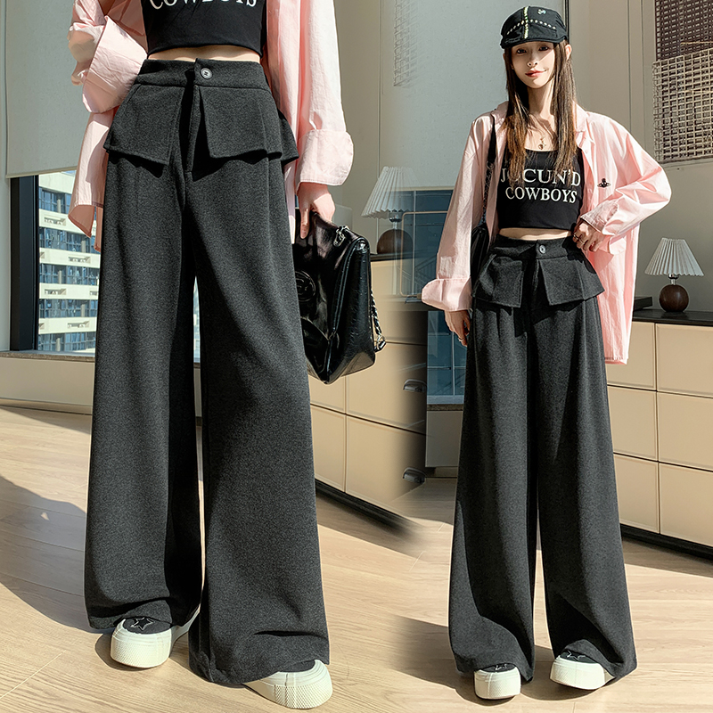 Home > 牛仔裤、长裤 > FA54799# 针织假两件屁帘阔腿裤女春季弹力高腰显瘦休闲拖地运动裤 服裝批發女裝批發服飾貨源