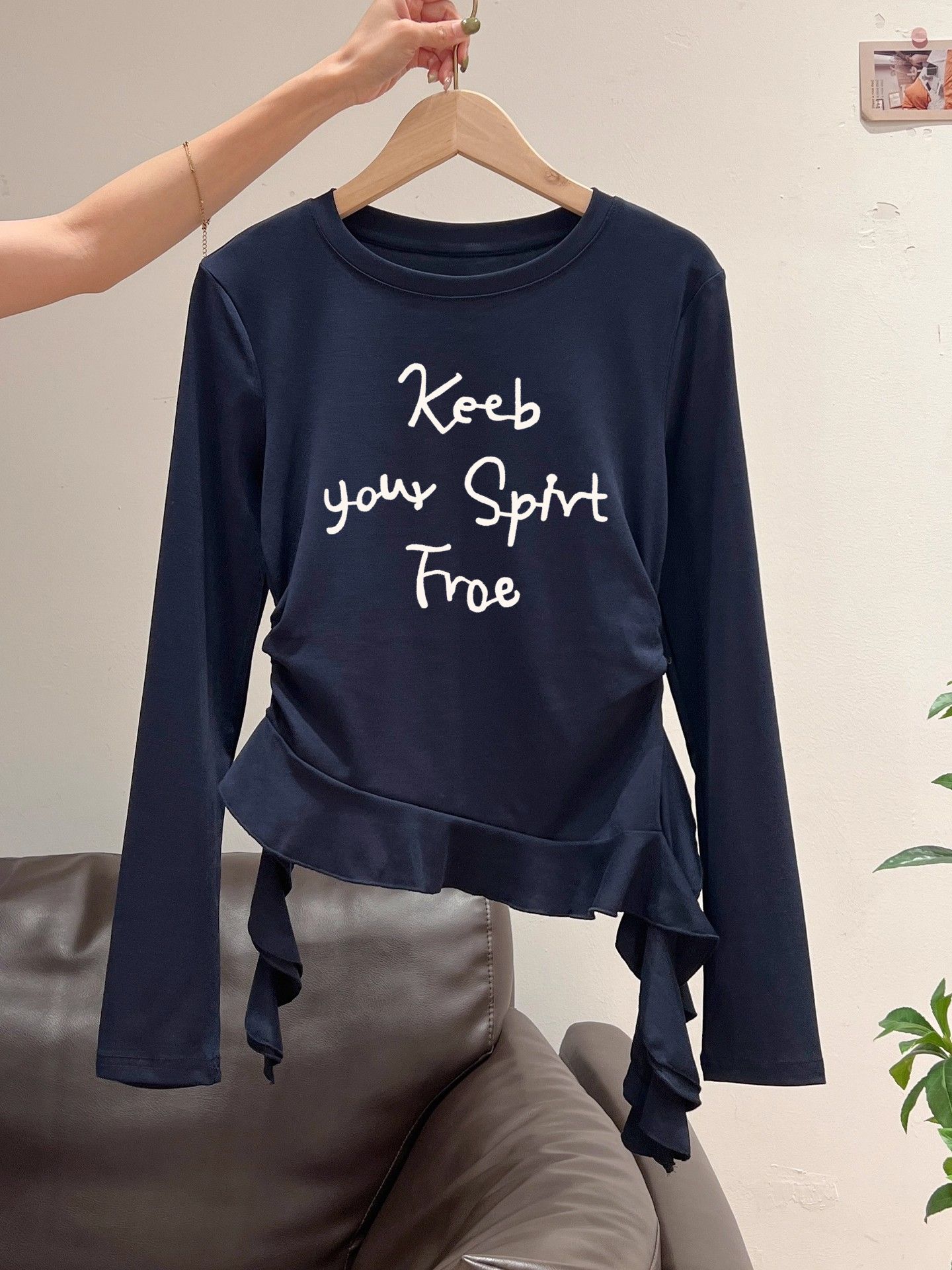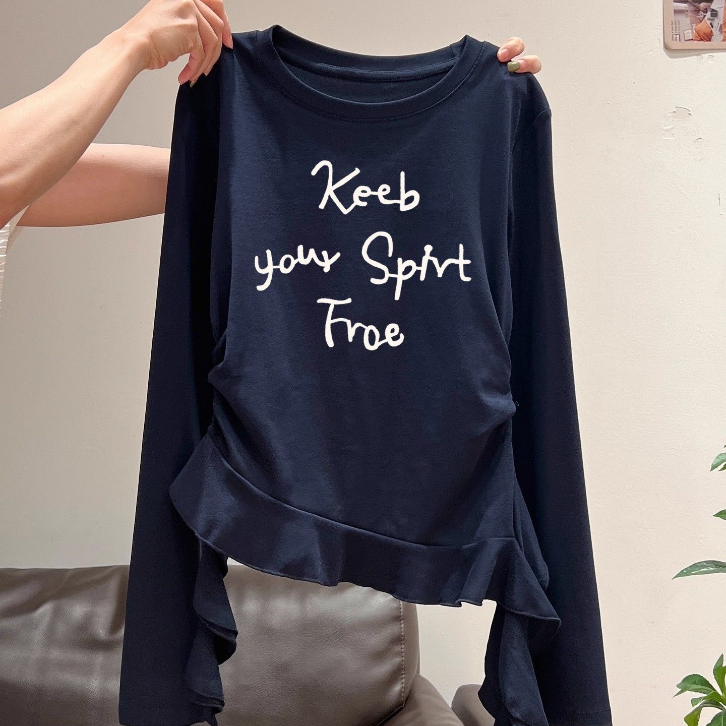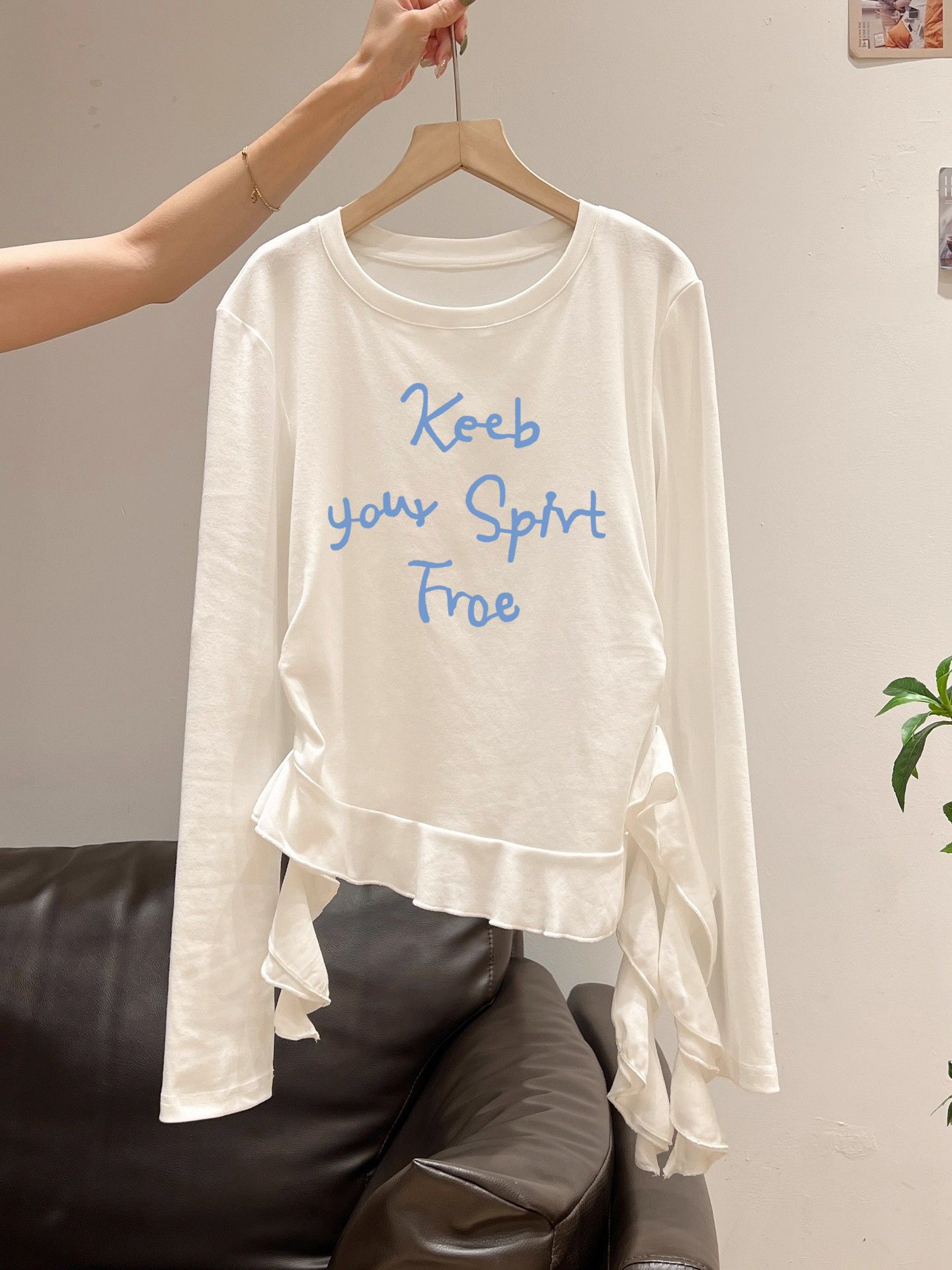 FA54812# 支棉小个子短款不规则修身长袖t恤女上衣 服裝批發女裝批發服飾貨源