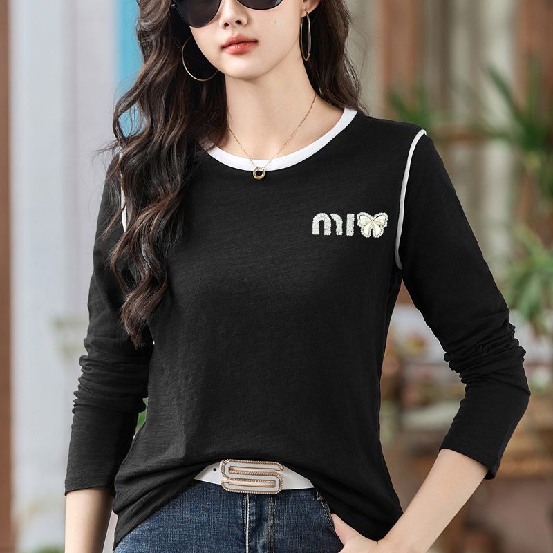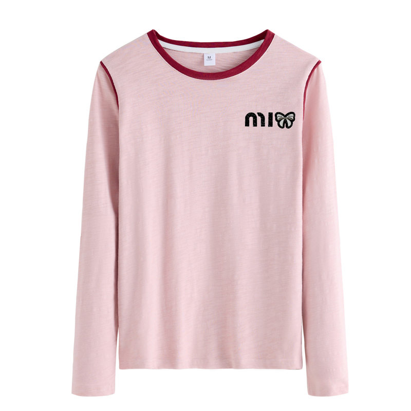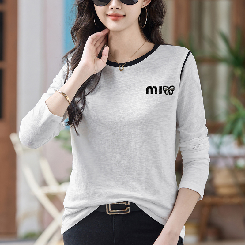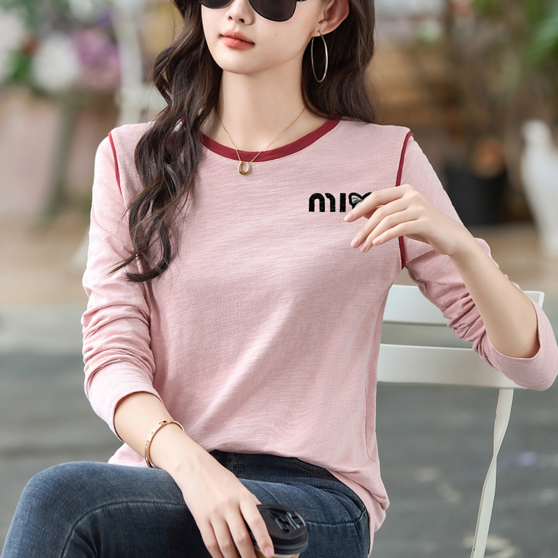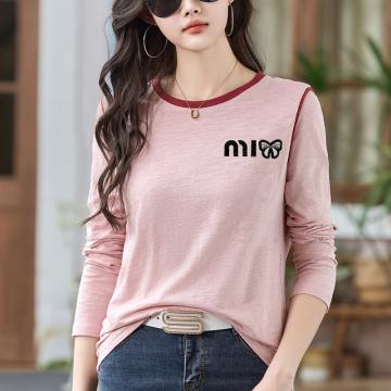 FA54821# 早春季新款正肩长袖t恤女纯棉减龄时尚设计感竹节棉上衣打底衫女 服裝批發女裝批發服飾貨源