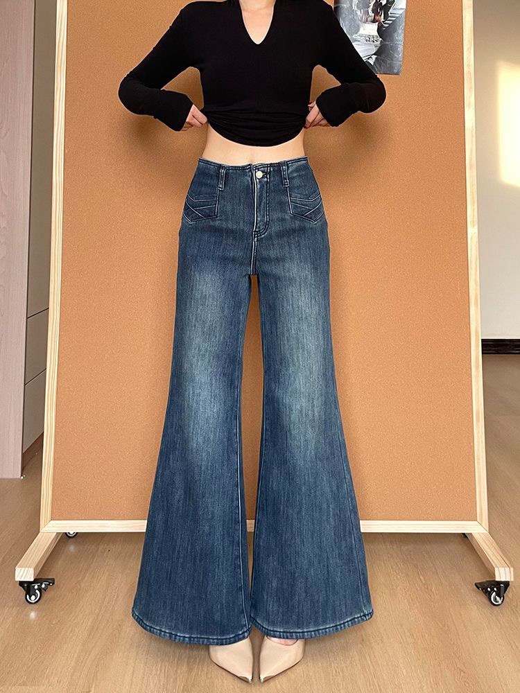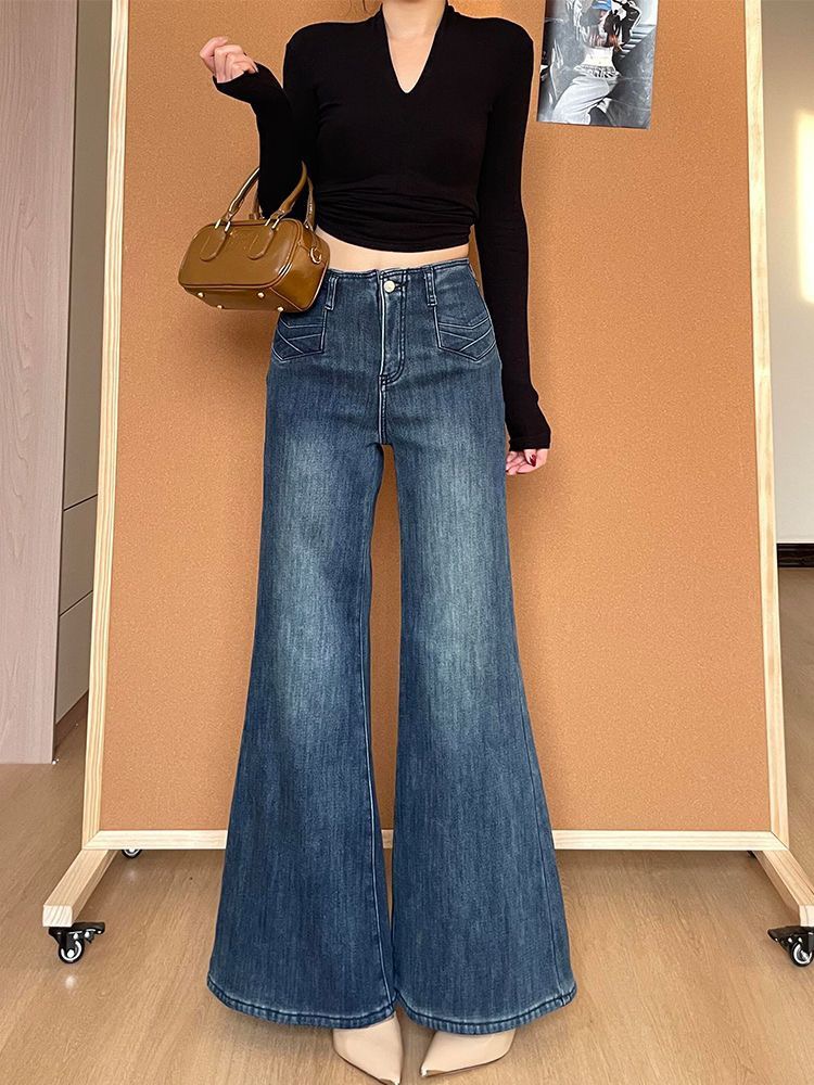 FA54882# 小个子美式辣妹高街微喇牛仔裤女高腰新款百搭显瘦喇叭长裤 服裝批發女裝批發服飾貨源