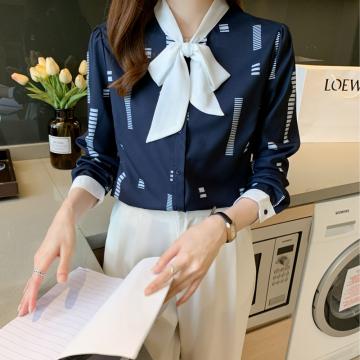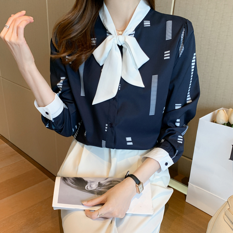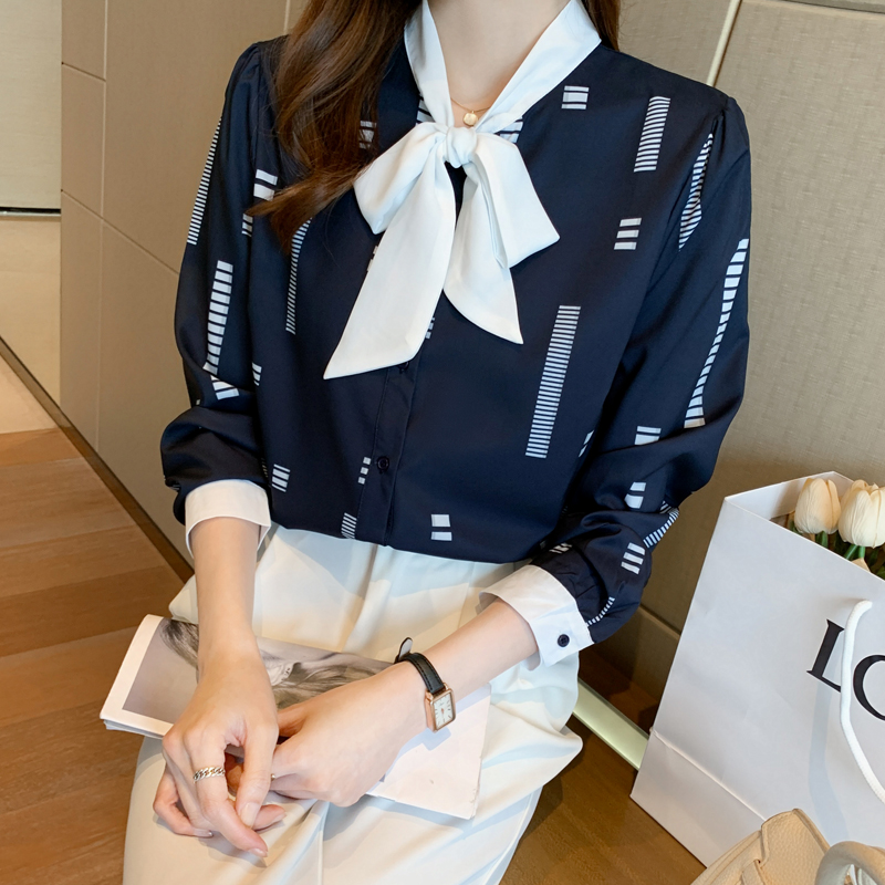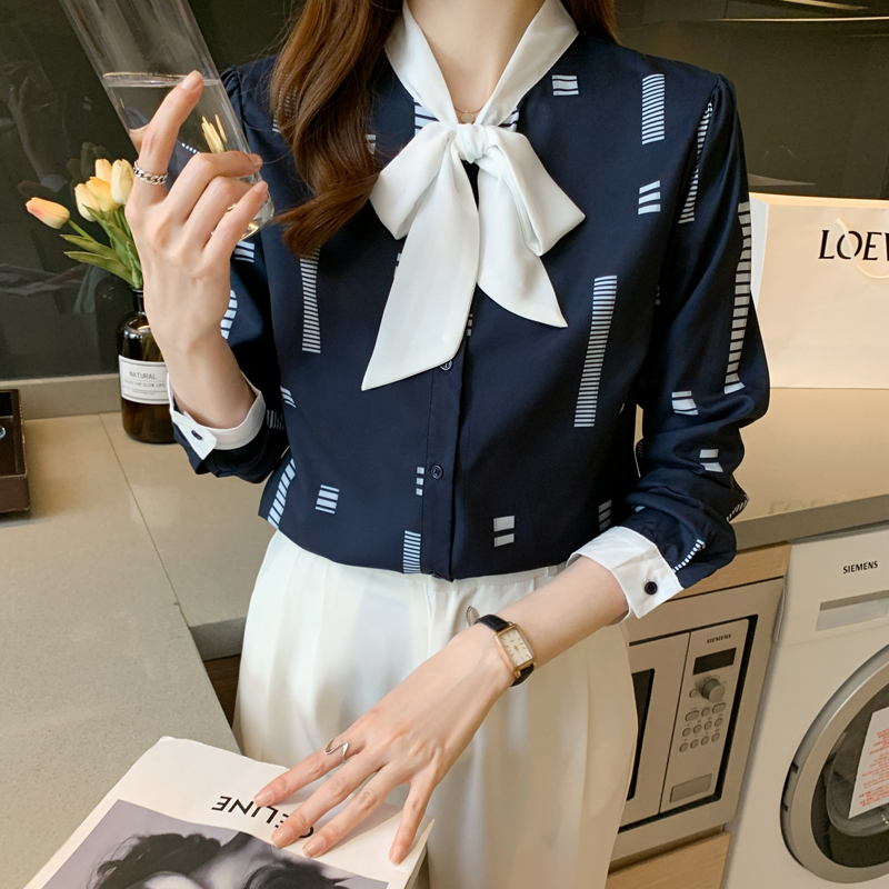FA55005# 洋气春秋季新女装蝴蝶结系带雪纺衫上衣显瘦开衫衬衫女打底衫 服裝批發女裝批發服飾貨源
