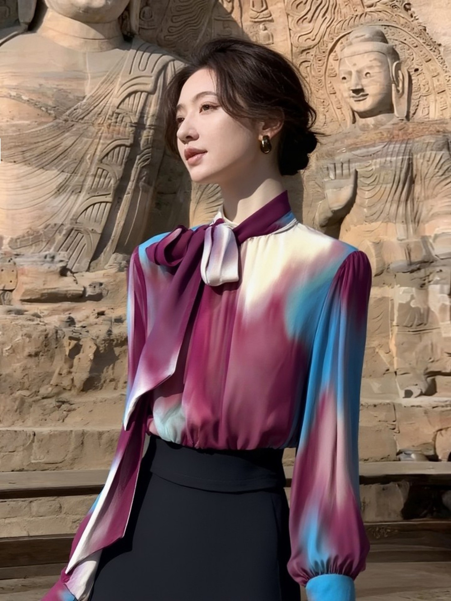 FA55009# 紫色晕染衬衫女春新款轻奢高级感独特漂亮巨好看法式小资上衣 服裝批發女裝批發服飾貨源