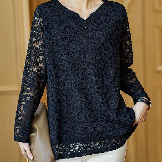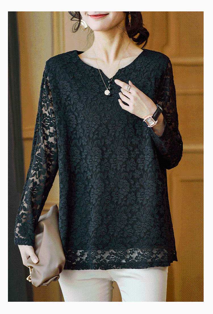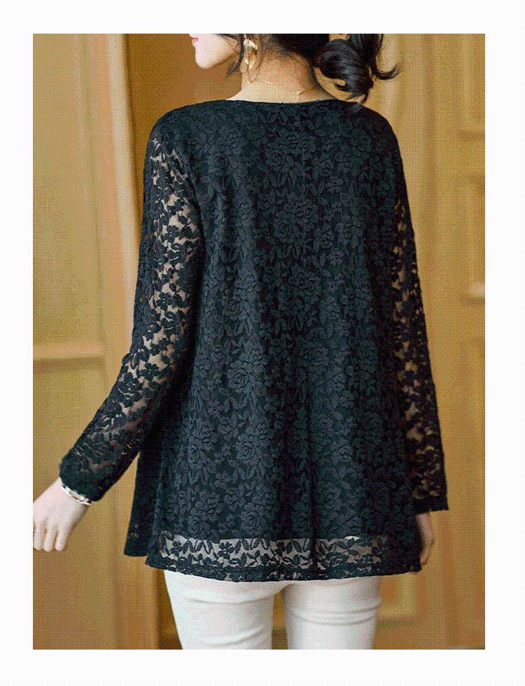FA55034# 蕾丝上衣女长袖中长款大码雷丝小衫宽松遮肚子打底衫 服裝批發女裝批發服飾貨源