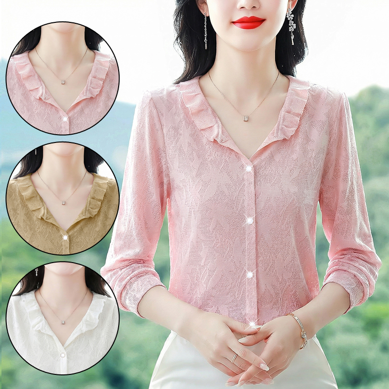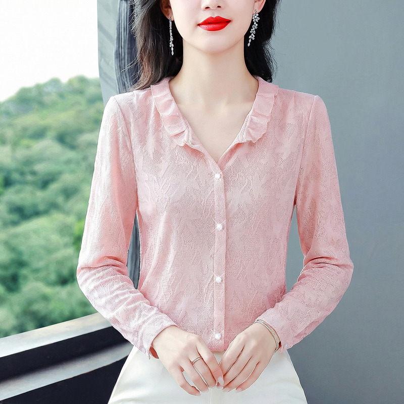 FA55065# 法式网纹花边可立可翻领衬衫女春季宫廷风内搭早春打底衬衣 服裝批發女裝批發服飾貨源