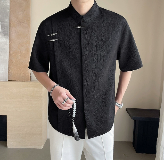 LN76435# 黁白新中式短袖衬衫男夏季潮牌痞帅休闲衬衣新款男士上衣半袖寸衫