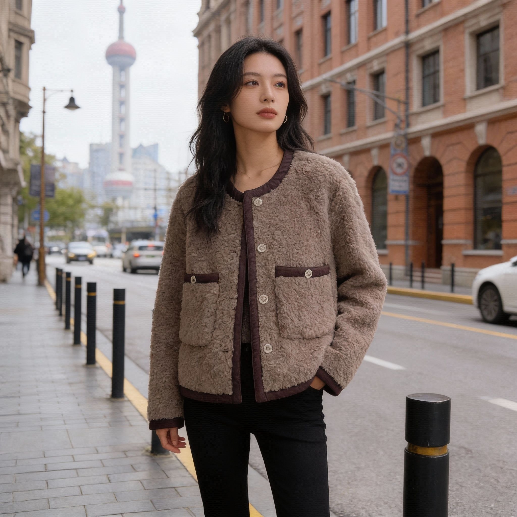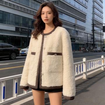 FA55098# 小香风羊羔毛短外套女秋冬加厚高级感气质名媛皮毛一体羊羔绒上衣 服裝批發女裝批發服飾貨源