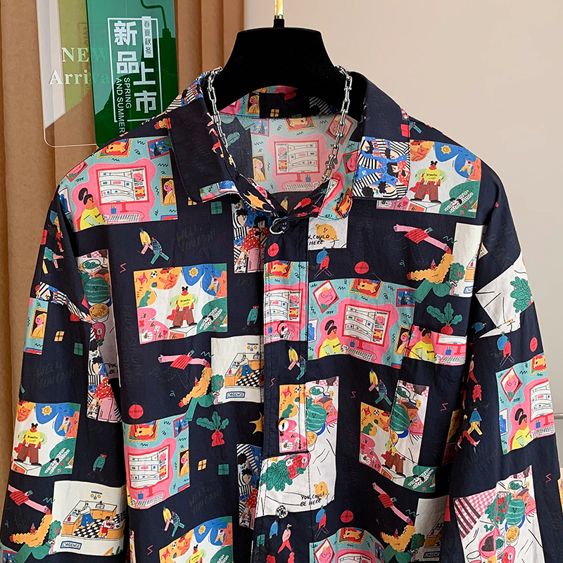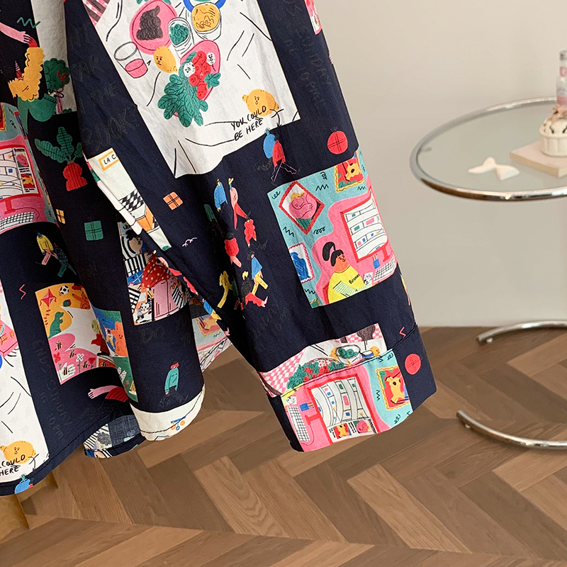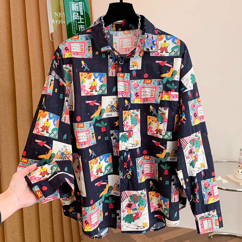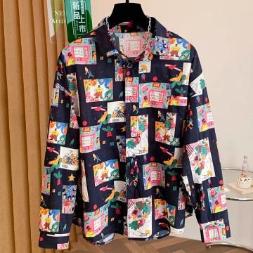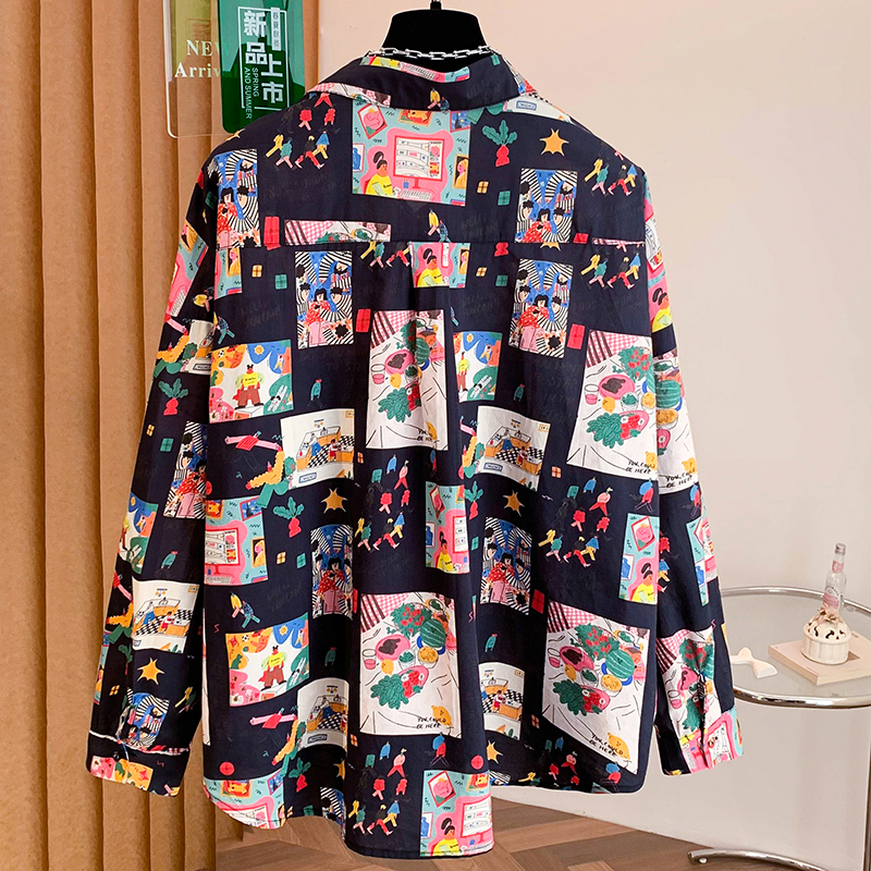FA55105# 春女装新款韩版印花翻领单排扣宽松纯棉长袖衬衫女衬衣 服裝批發女裝批發服飾貨源