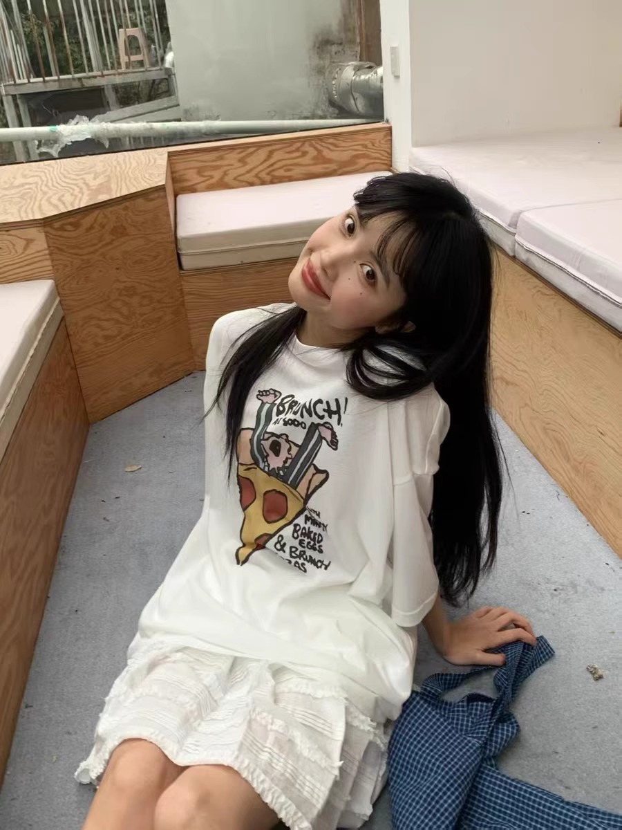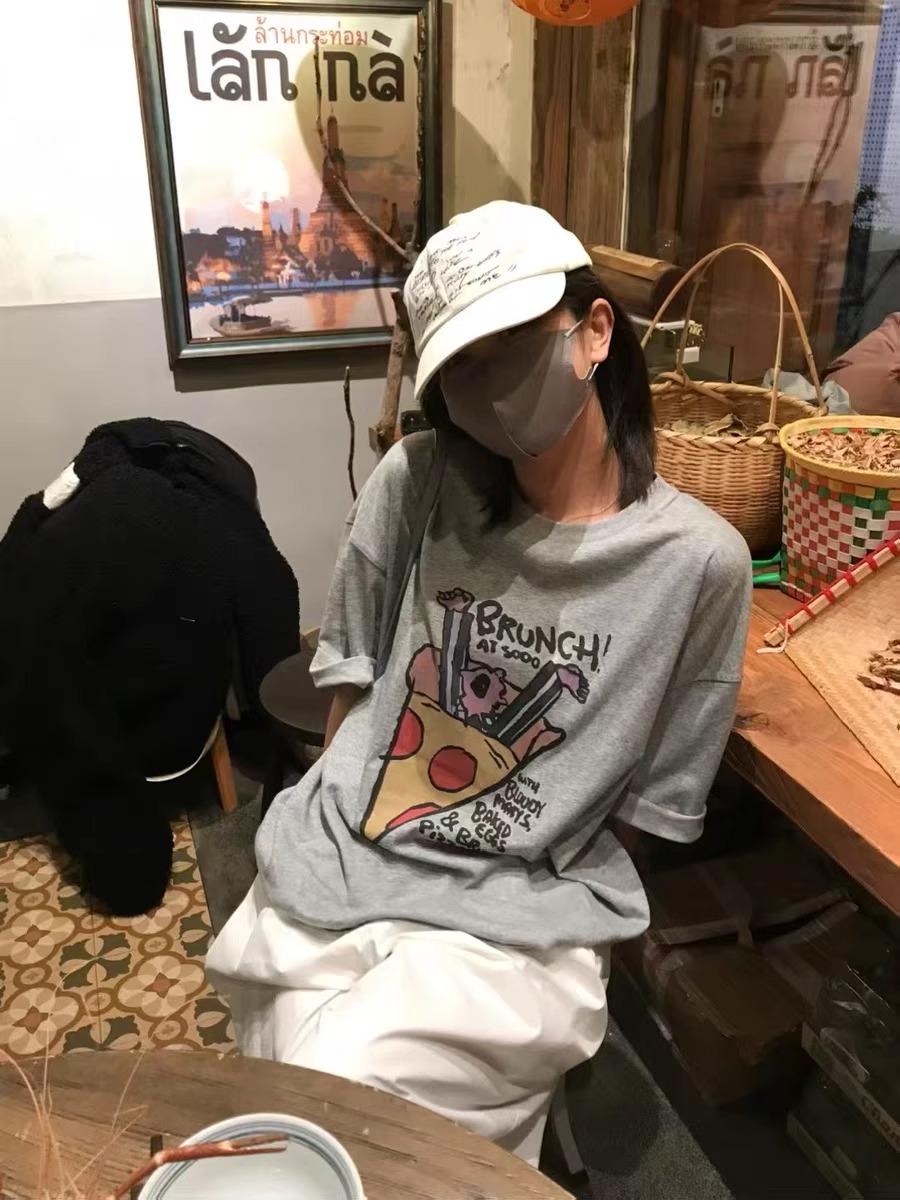 FA55196# 棉印花披萨图案短袖T恤女 服裝批發女裝批發服飾貨源