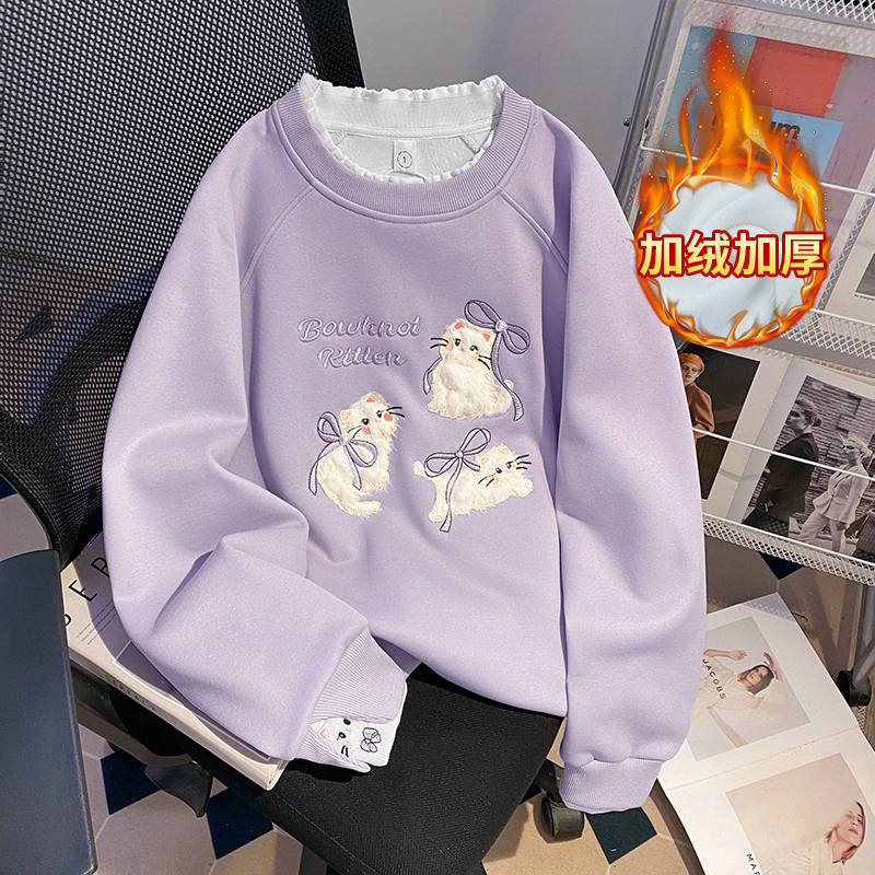 纯棉华棉复合奥粒绒卫衣女装秋冬新款刺绣花连帽保暖上衣 服裝批發女裝批發服飾貨源