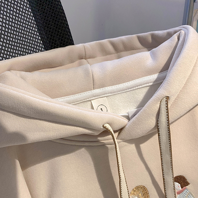 加绒卫衣女装秋冬新款宽松手工串珠亮片连帽保暖韩版上衣 服裝批發女裝批發服飾貨源