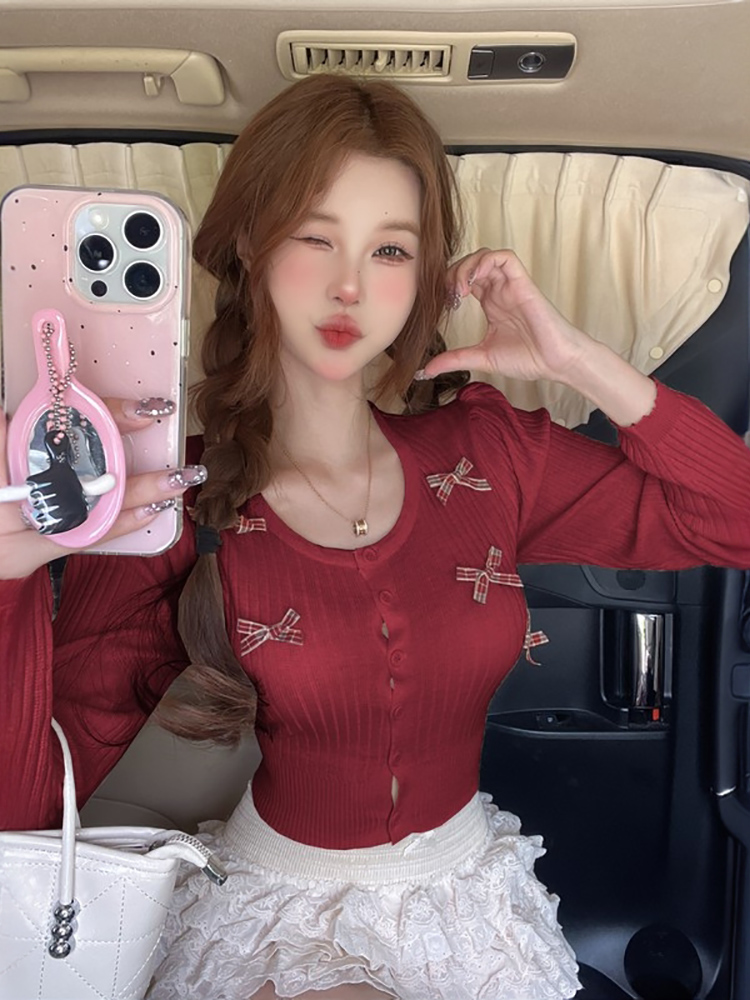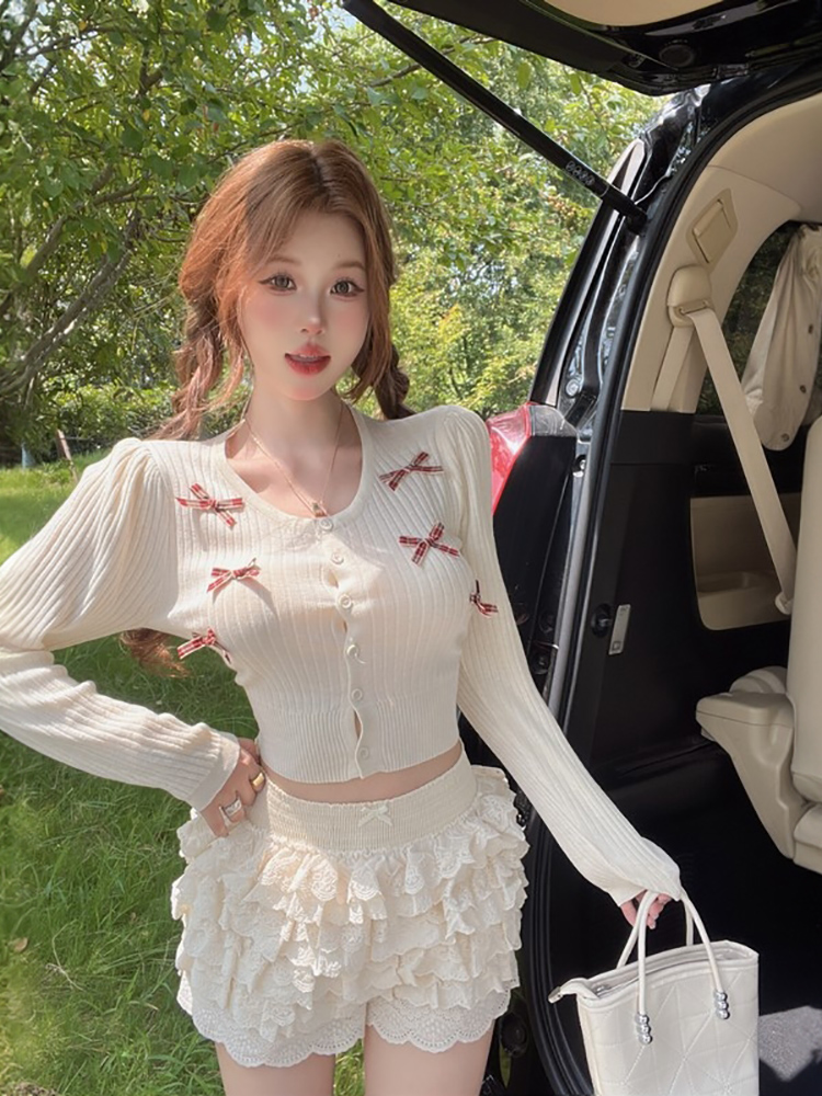 FA55564# 立体蝴蝶结纯欲风针织开衫女秋季新款高级感法式洋气减龄甜美上衣 服裝批發女裝批發服飾貨源