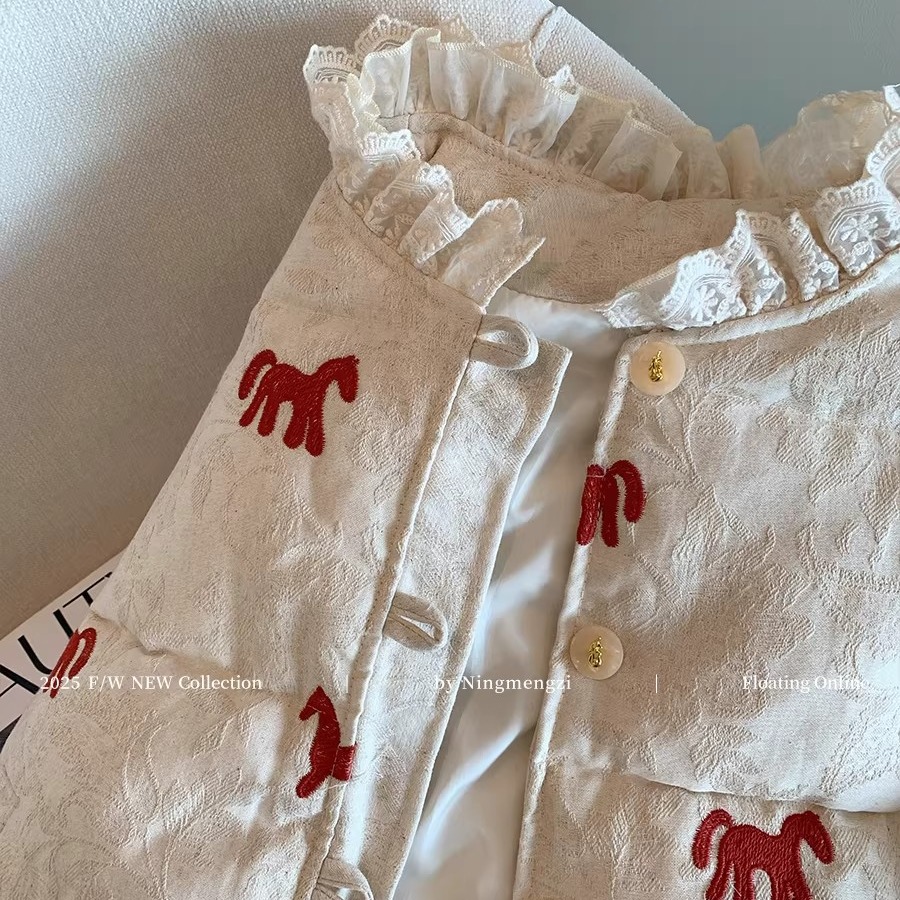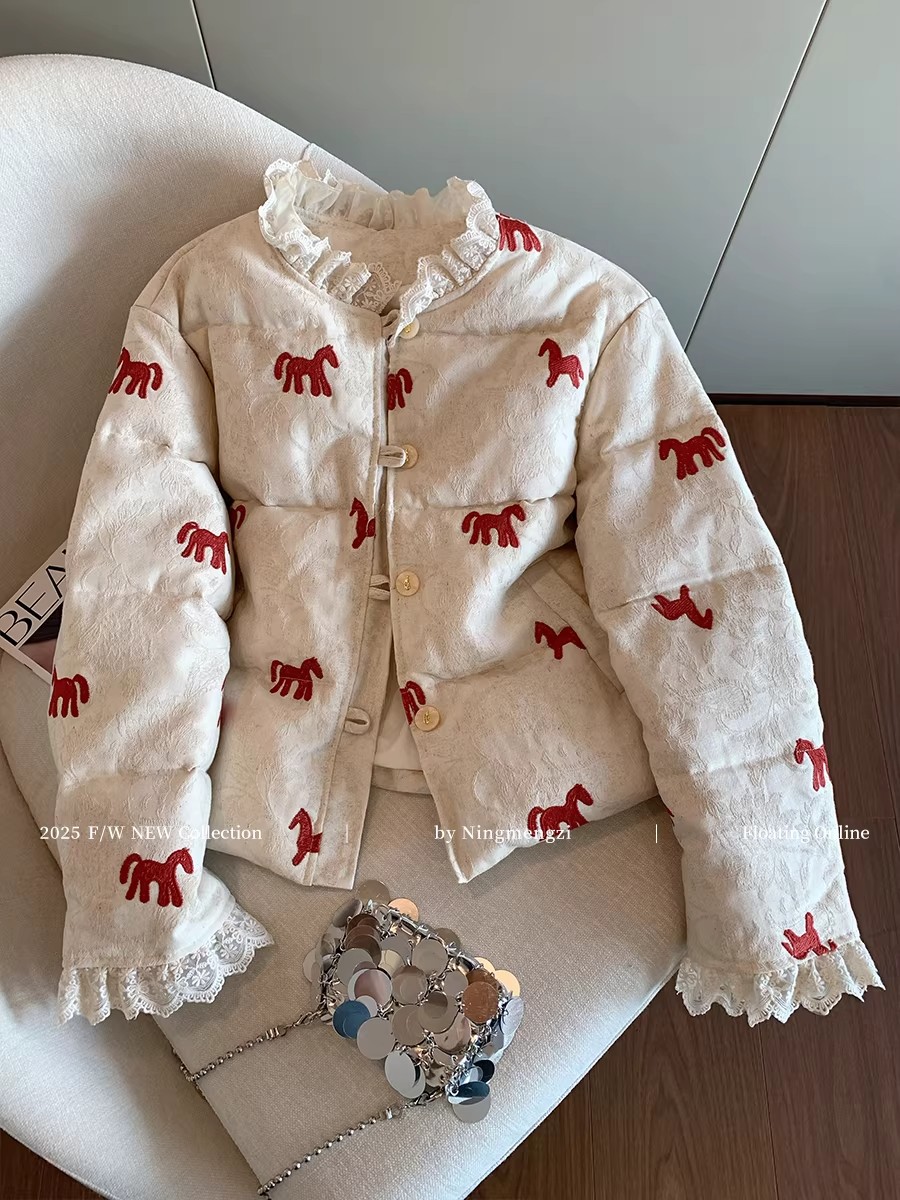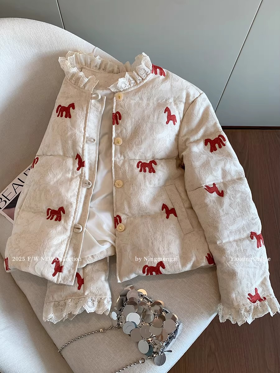 FA55566# 新中式小马刺绣花边棉服外套女秋冬新款上衣 服裝批發女裝批發服飾貨源