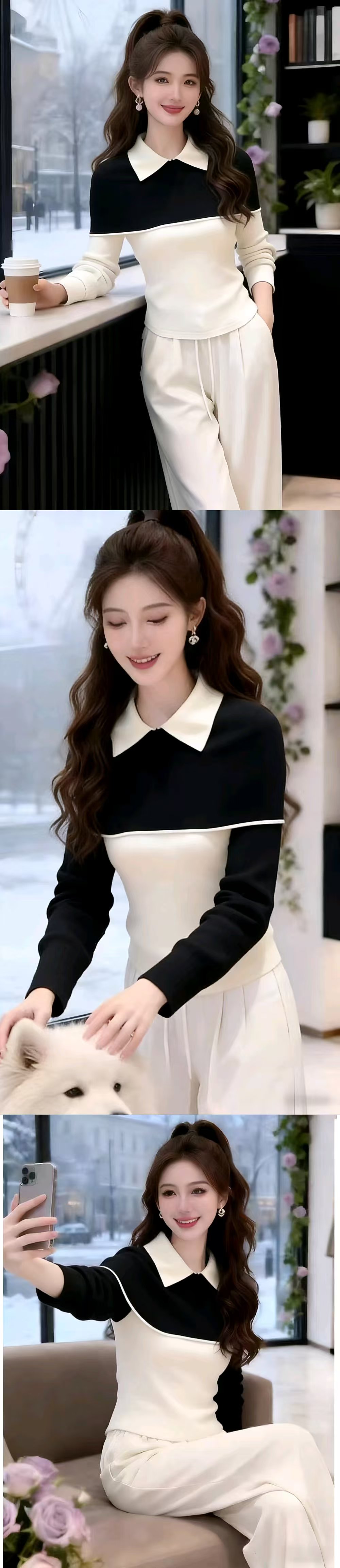 FA55571# 安迪绒洗水天猫抖音品质条纹Polo领针织毛衣女 服裝批發女裝批發服飾貨源