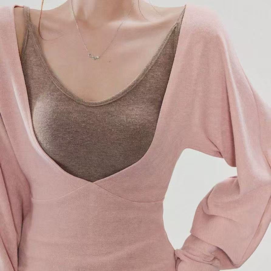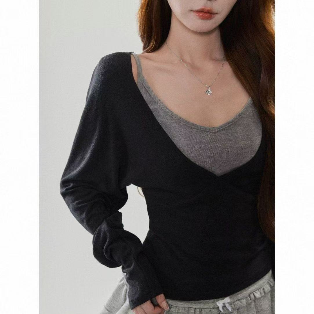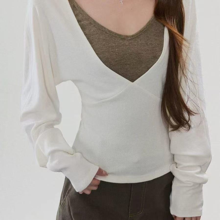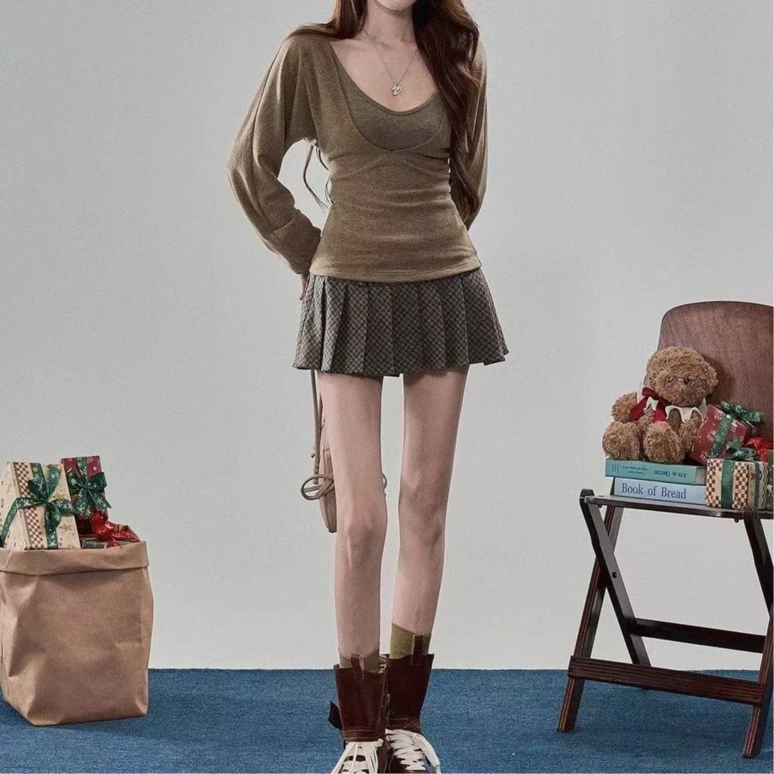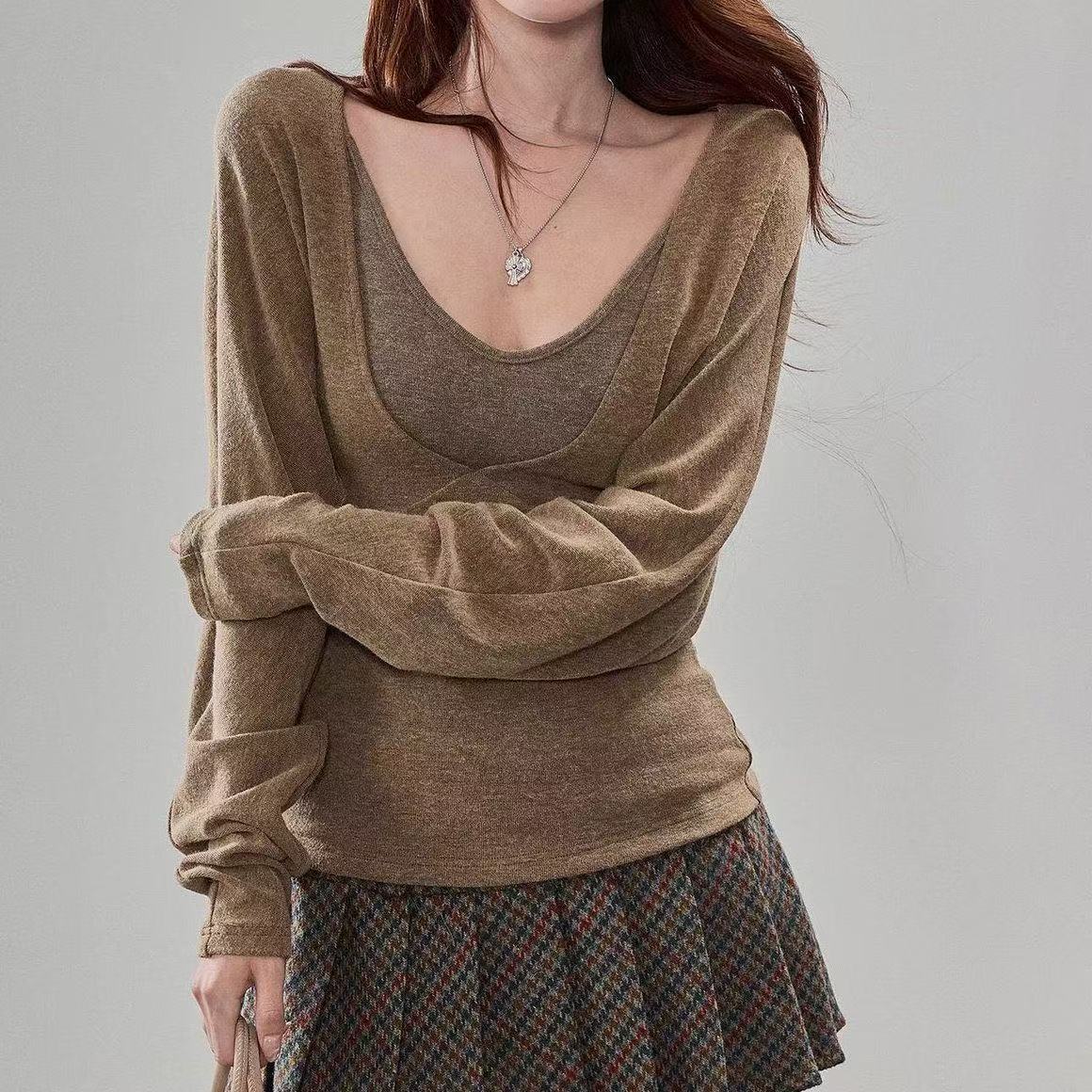 FA55572# 两件套复古早秋26AW新款纯欲风辣妹针织衫女收腰显瘦打底上衣 服裝批發女裝批發服飾貨源