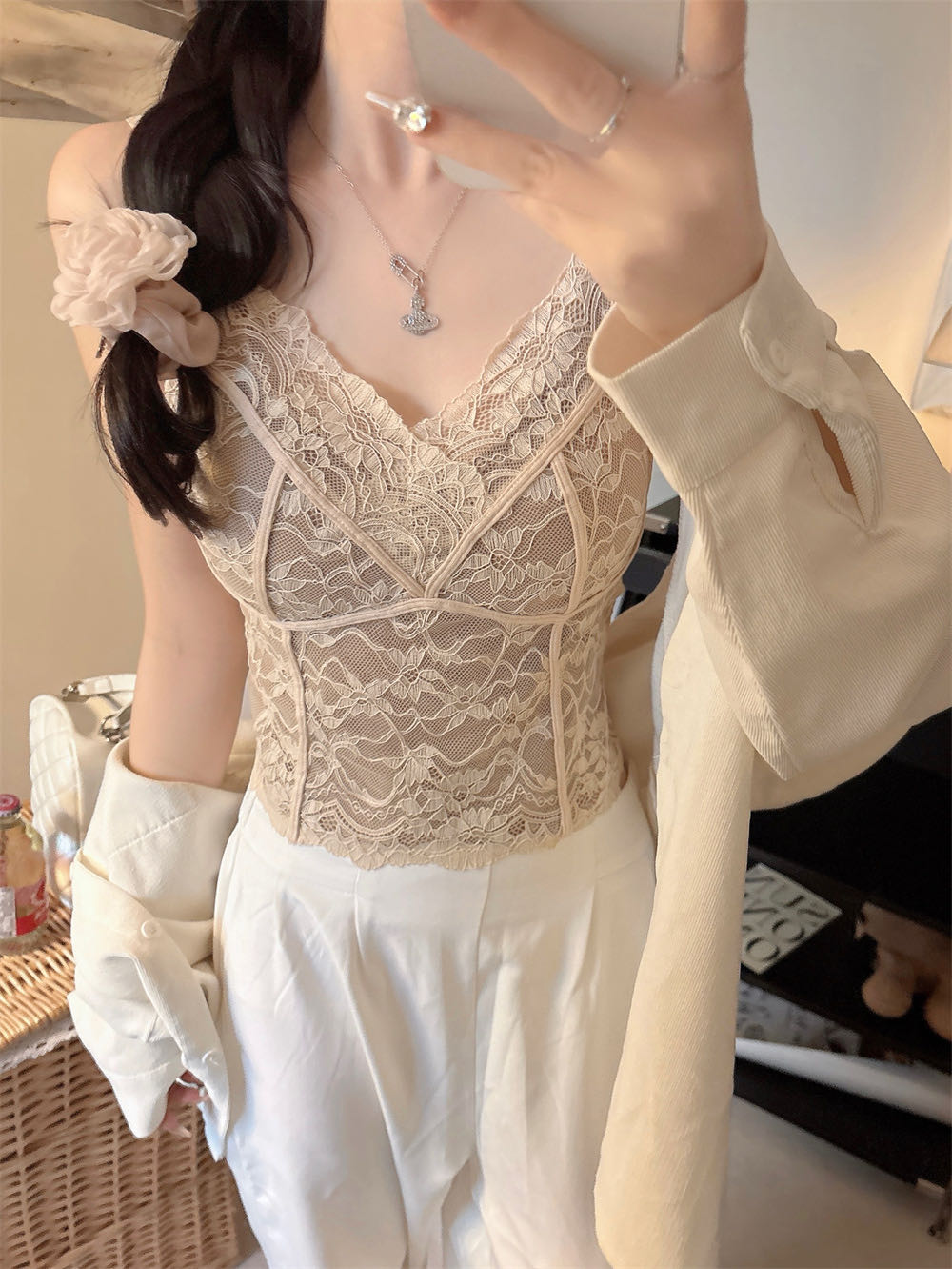 Home > 打底背心、防晒衣、围巾、披肩 > 加绒蕾丝吊带背心女带胸垫秋冬美背内衣打底衫保暖背心 服裝批發女裝批發服飾貨源