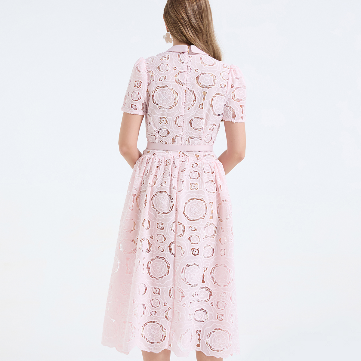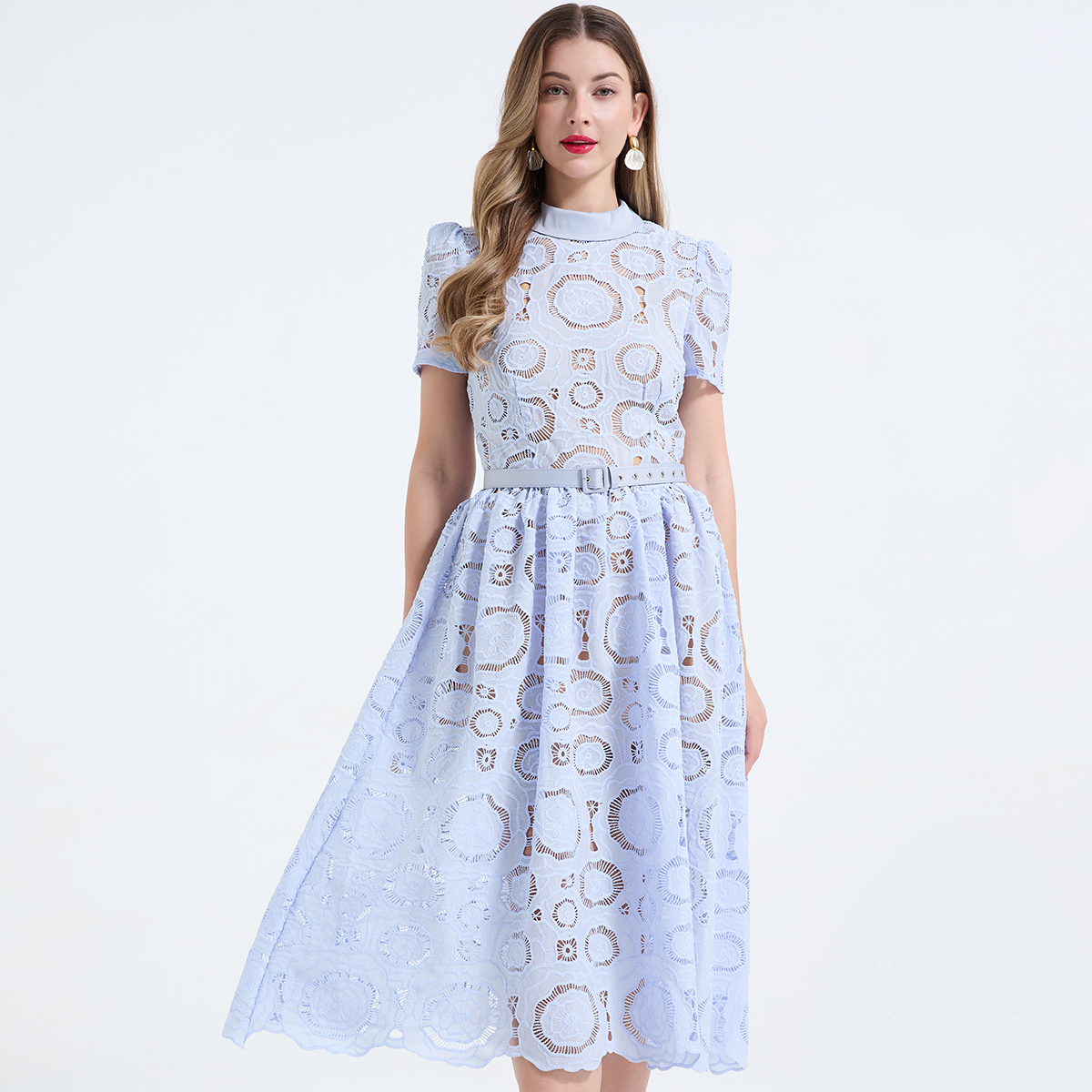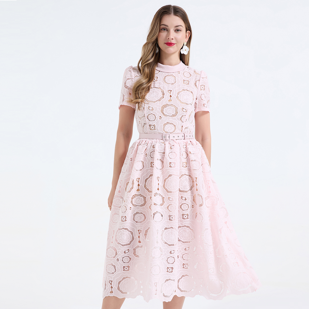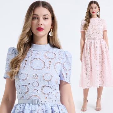 Home > 短袖连衣裙、夜店装 > FA55949# 重工蕾丝立体镂空花朵蕾丝拼接撞色修身连衣长裙 服裝批發女裝批發服飾貨源
