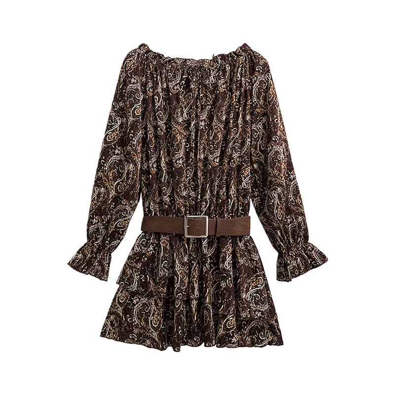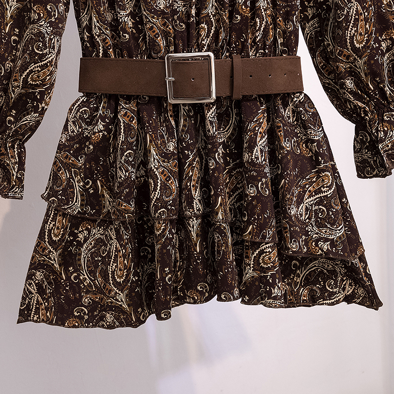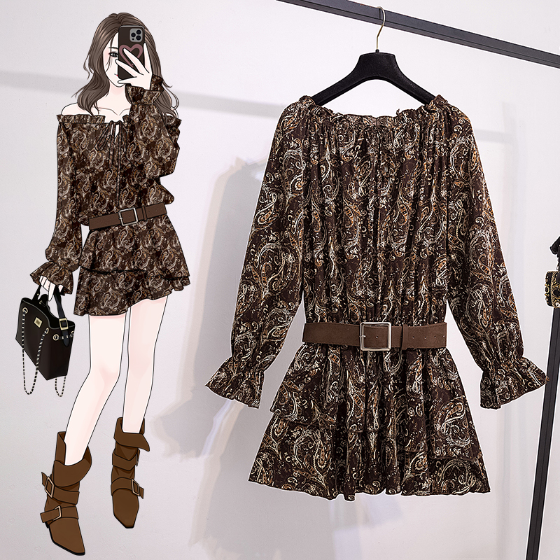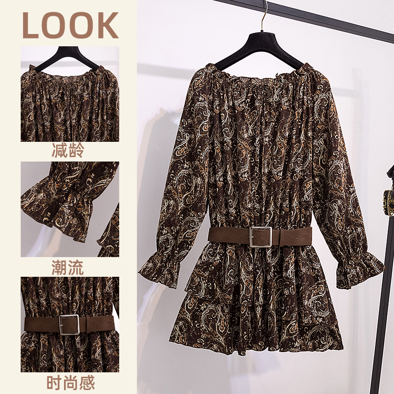 FA56076# 大码女装新款韩版高级感复古洋气碎花腰带蓬蓬裙衬裙连衣裙 服裝批發女裝批發服飾貨源