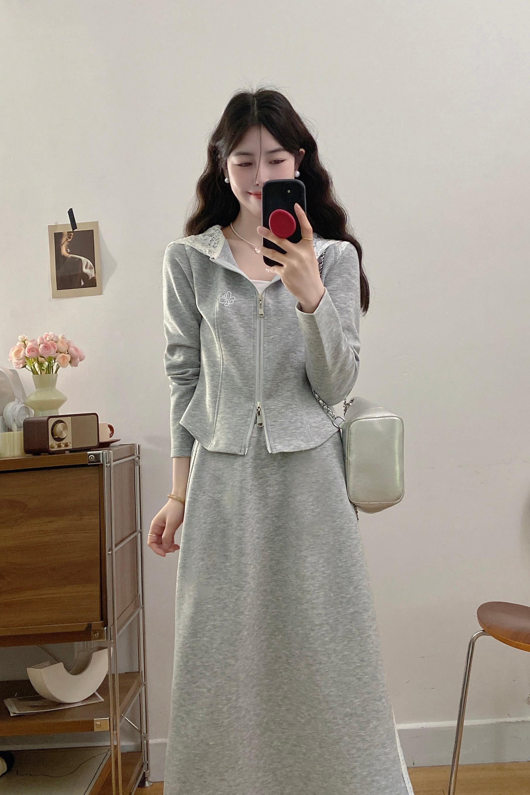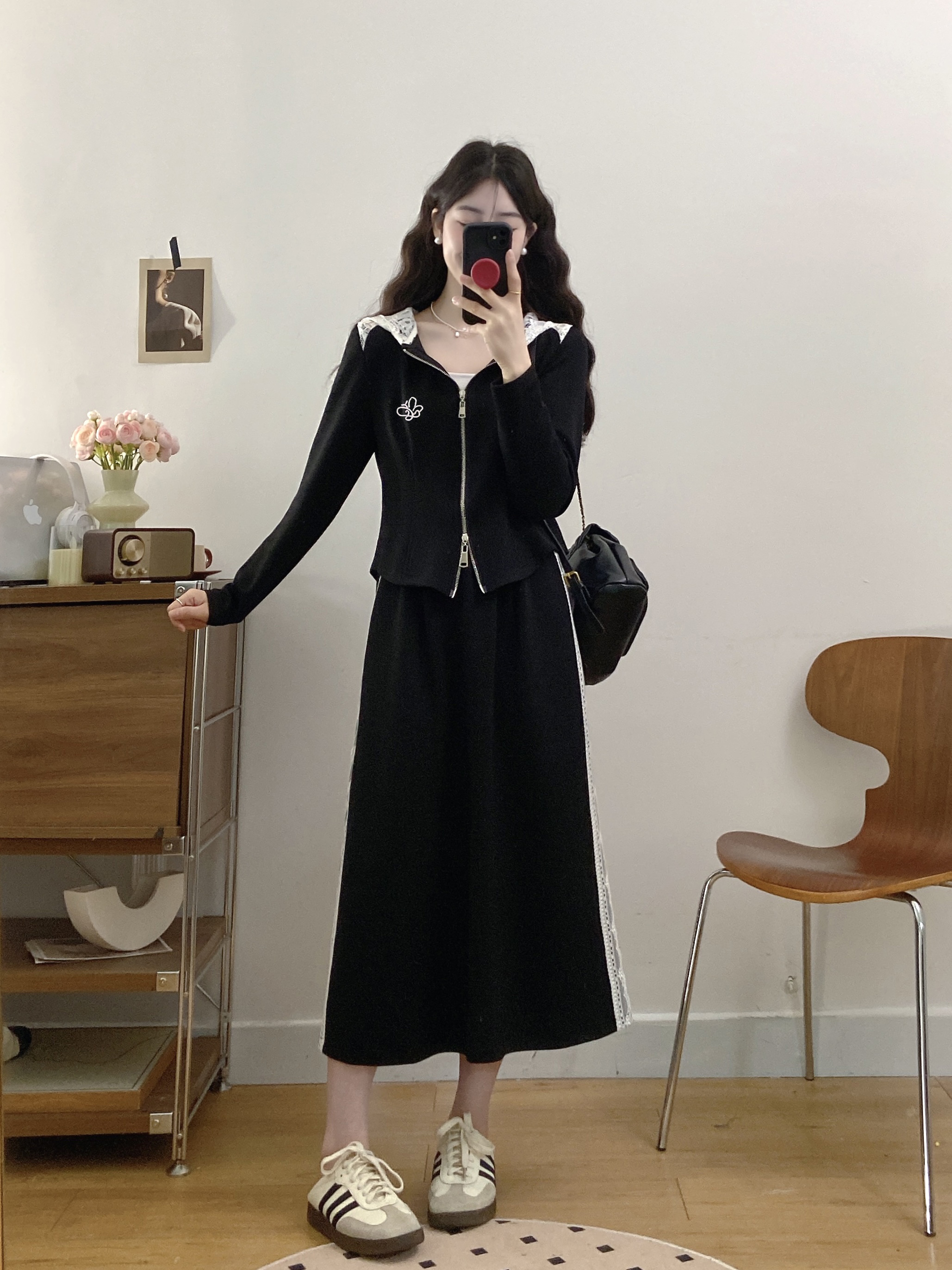 FA56326#大码女装胖mm新款刺绣蕾丝拼接上衣+半身裙两件套 服裝批發女裝批發服飾貨源