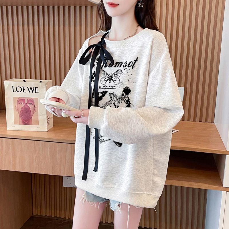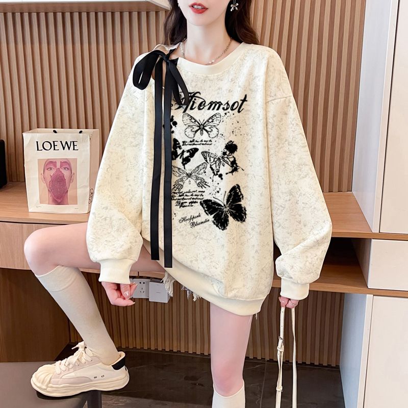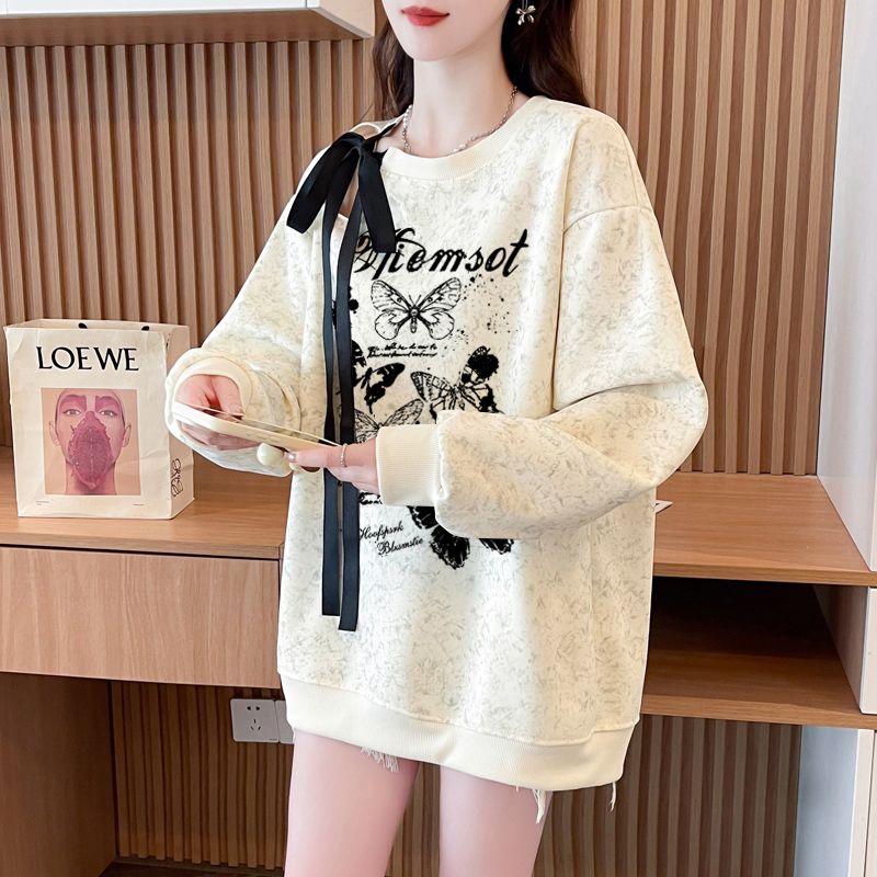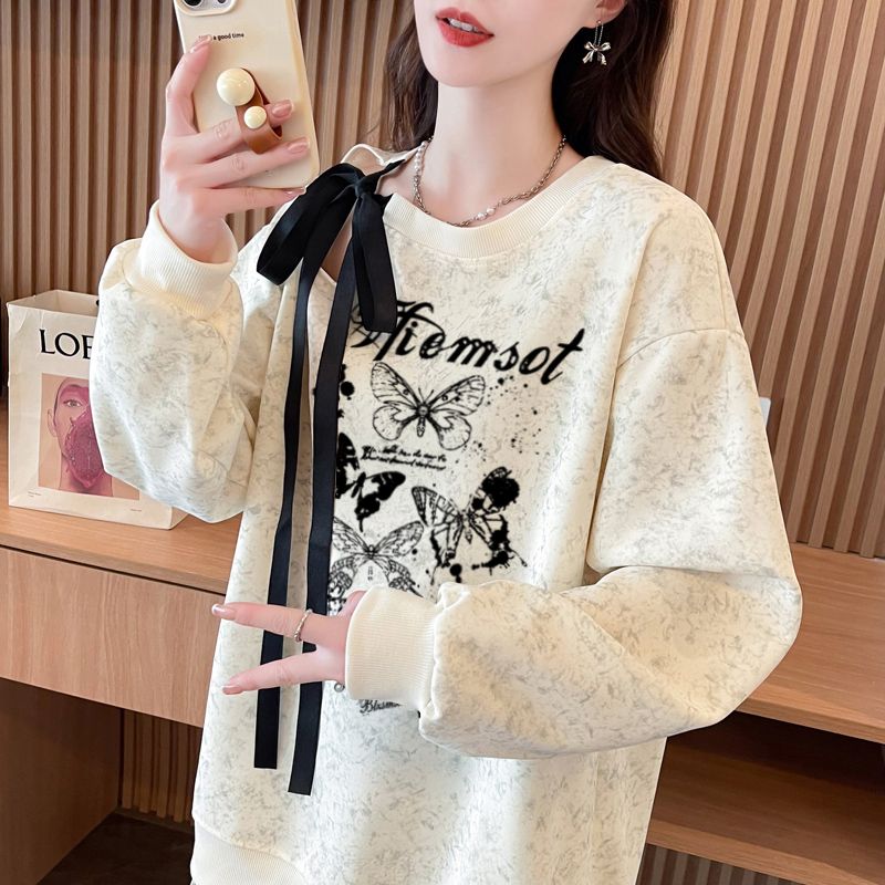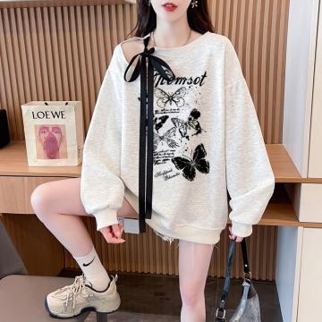 FA56342#大码300斤华棉复飘带蝴蝶结镂空扎染印花卫衣女 服裝批發女裝批發服飾貨源