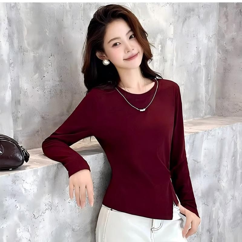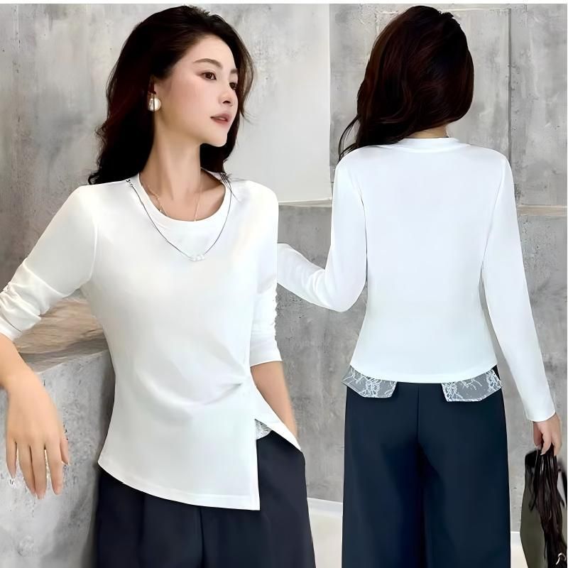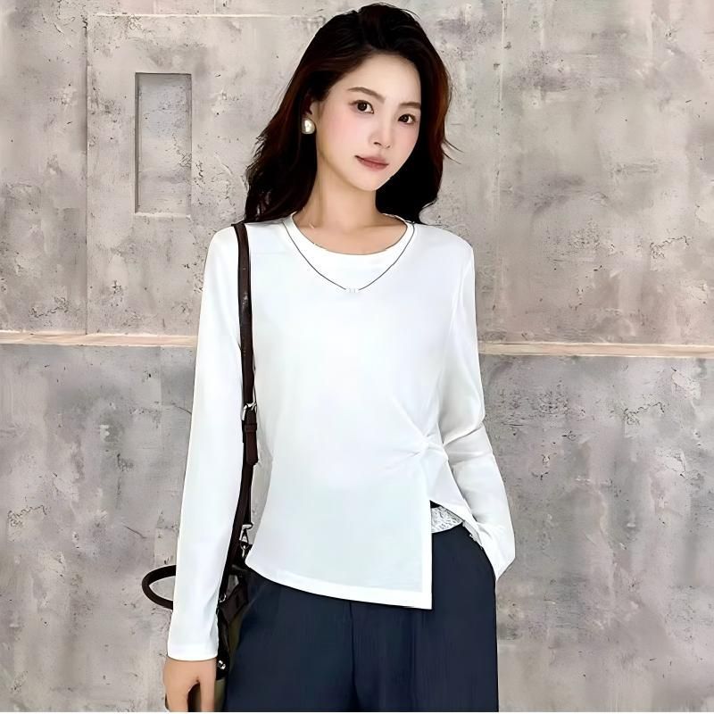 FA56350#酷丝爽棉白长袖t恤女新款爆款秋小衫巨好看轻熟上衣女 服裝批發女裝批發服飾貨源