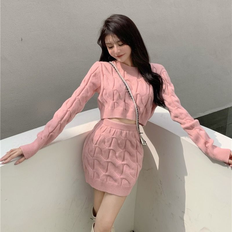 FA56366#两件套气质显瘦赫本风法式复古针织毛衣打底配大衣连衣裙 服裝批發女裝批發服飾貨源