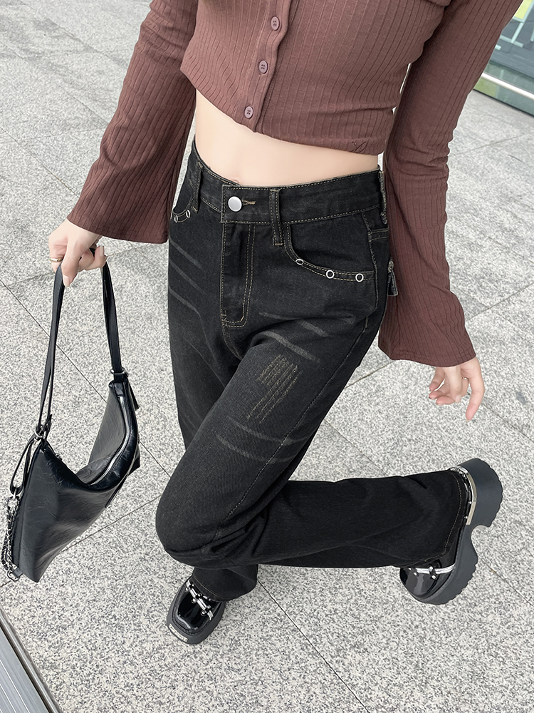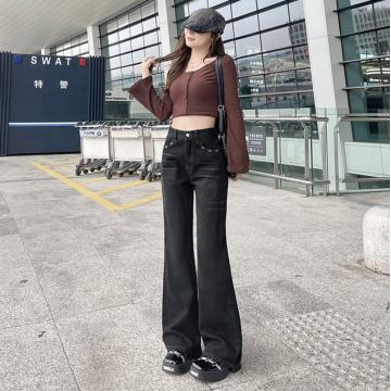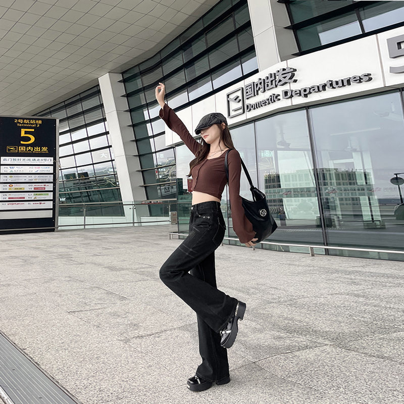 FA56804# -小个子宽松大码美式小众牛仔喇叭长裤复古修身直筒微喇裤子 服裝批發女裝批發服飾貨源