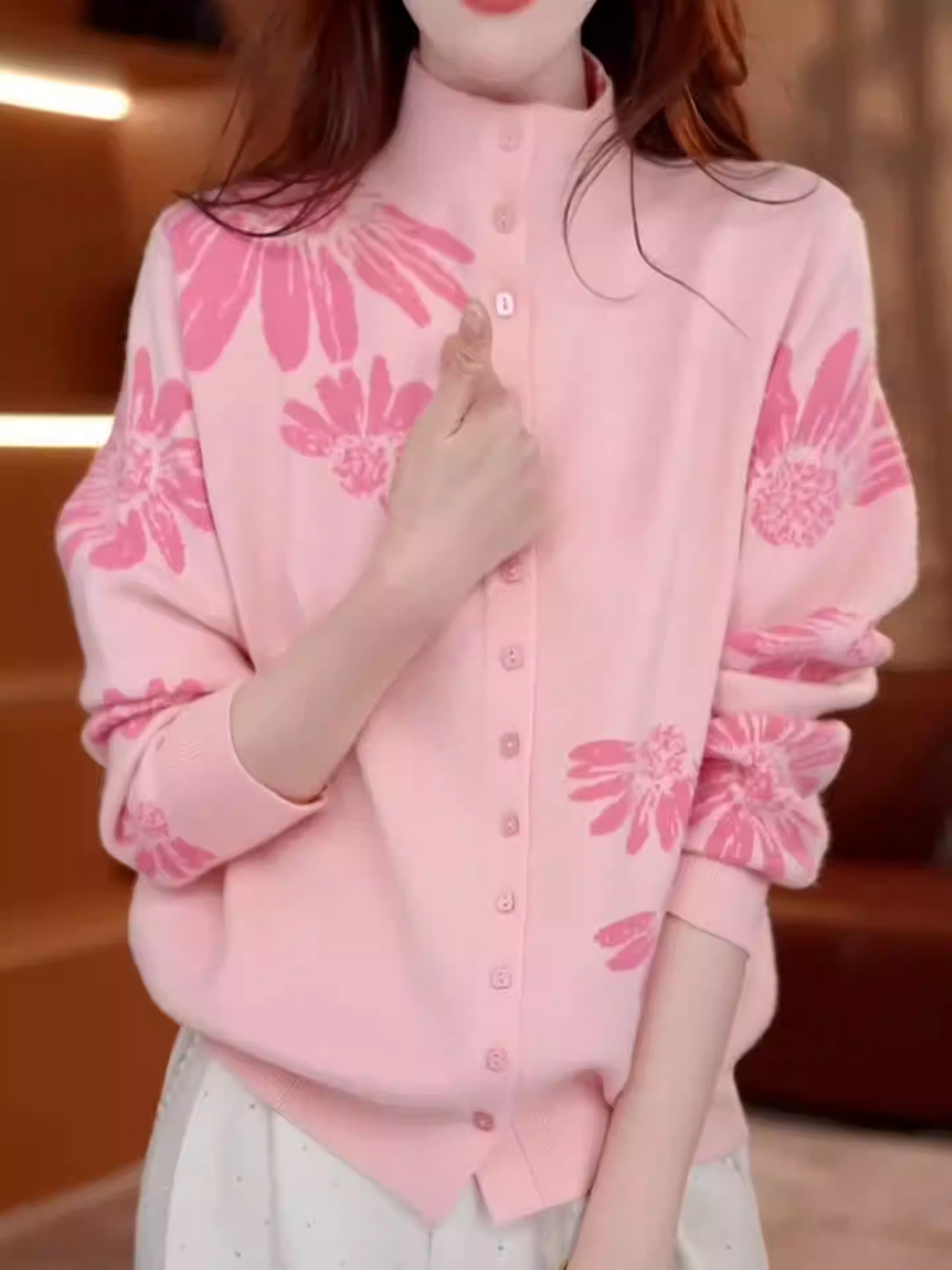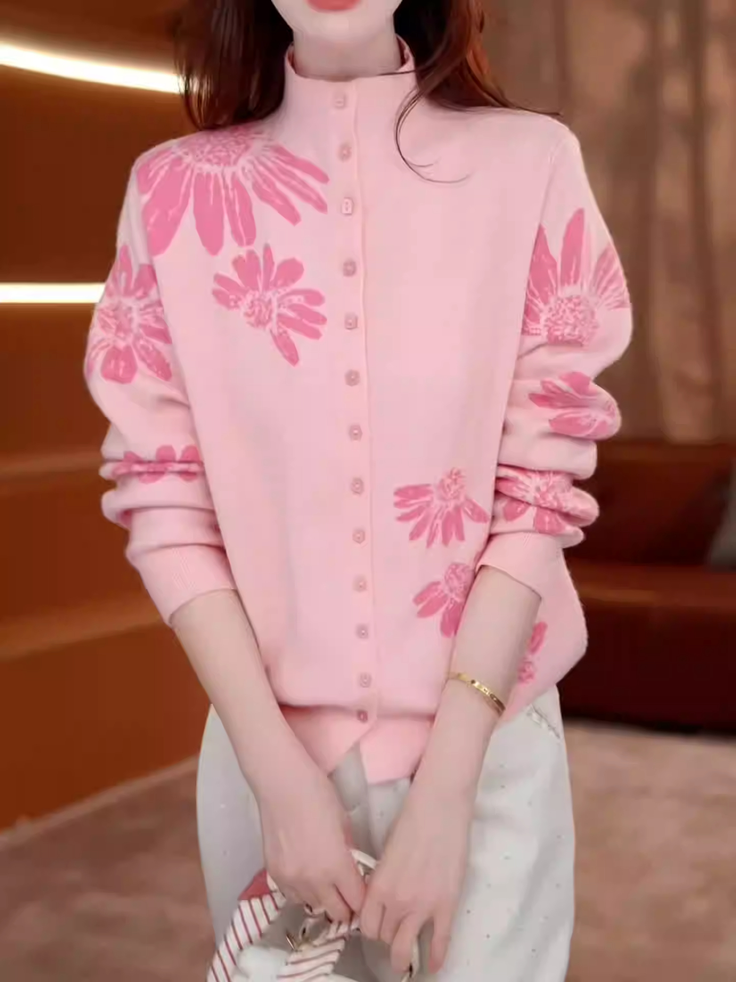 FA56846# 时尚减龄雏菊提花针织开衫女秋冬新款气质百搭显瘦单排扣上衣 服裝批發女裝批發服飾貨源