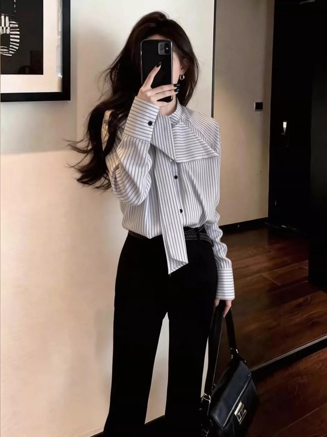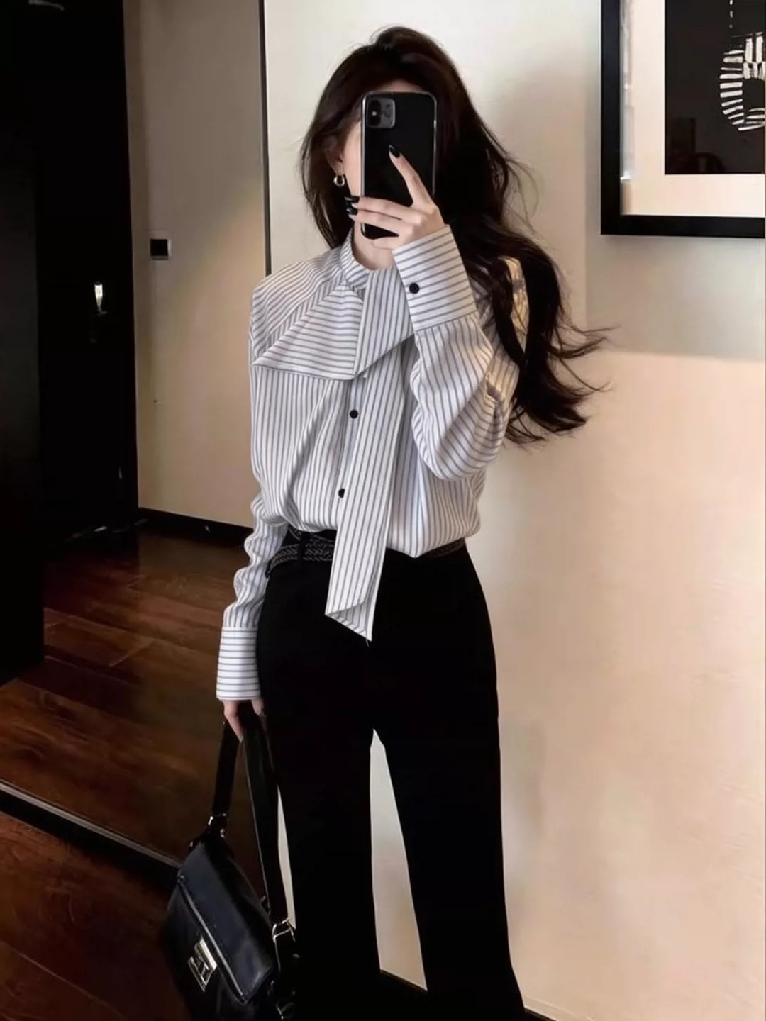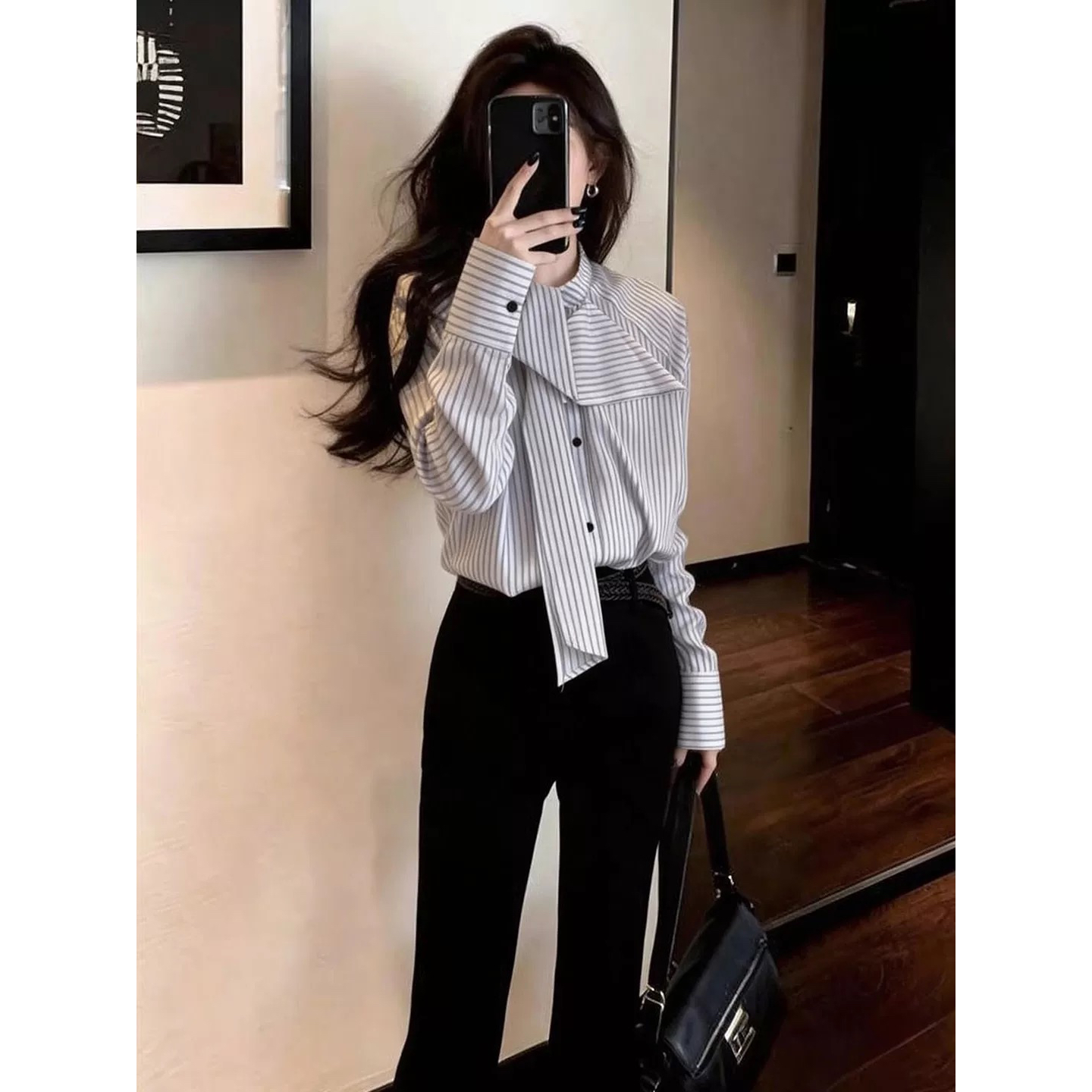 BY10537# 设计感高级流行百搭条纹衬衫女春薄款条纹蝴蝶结领带开衫 服裝批發女裝批發服飾貨源