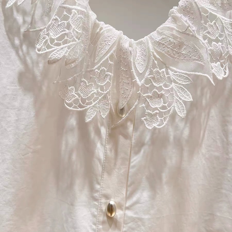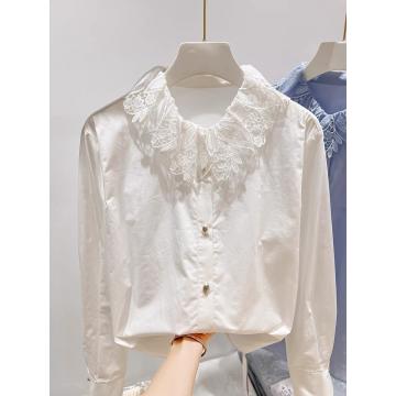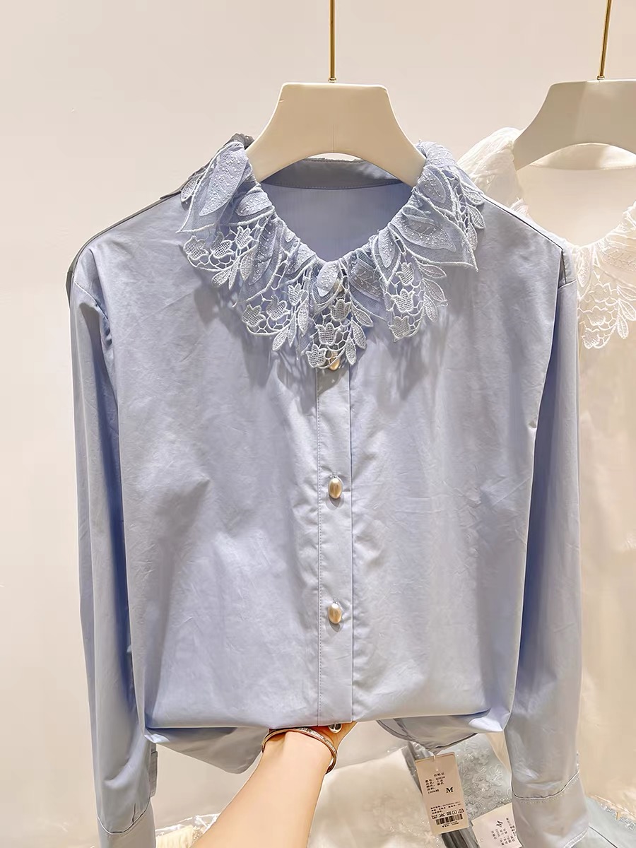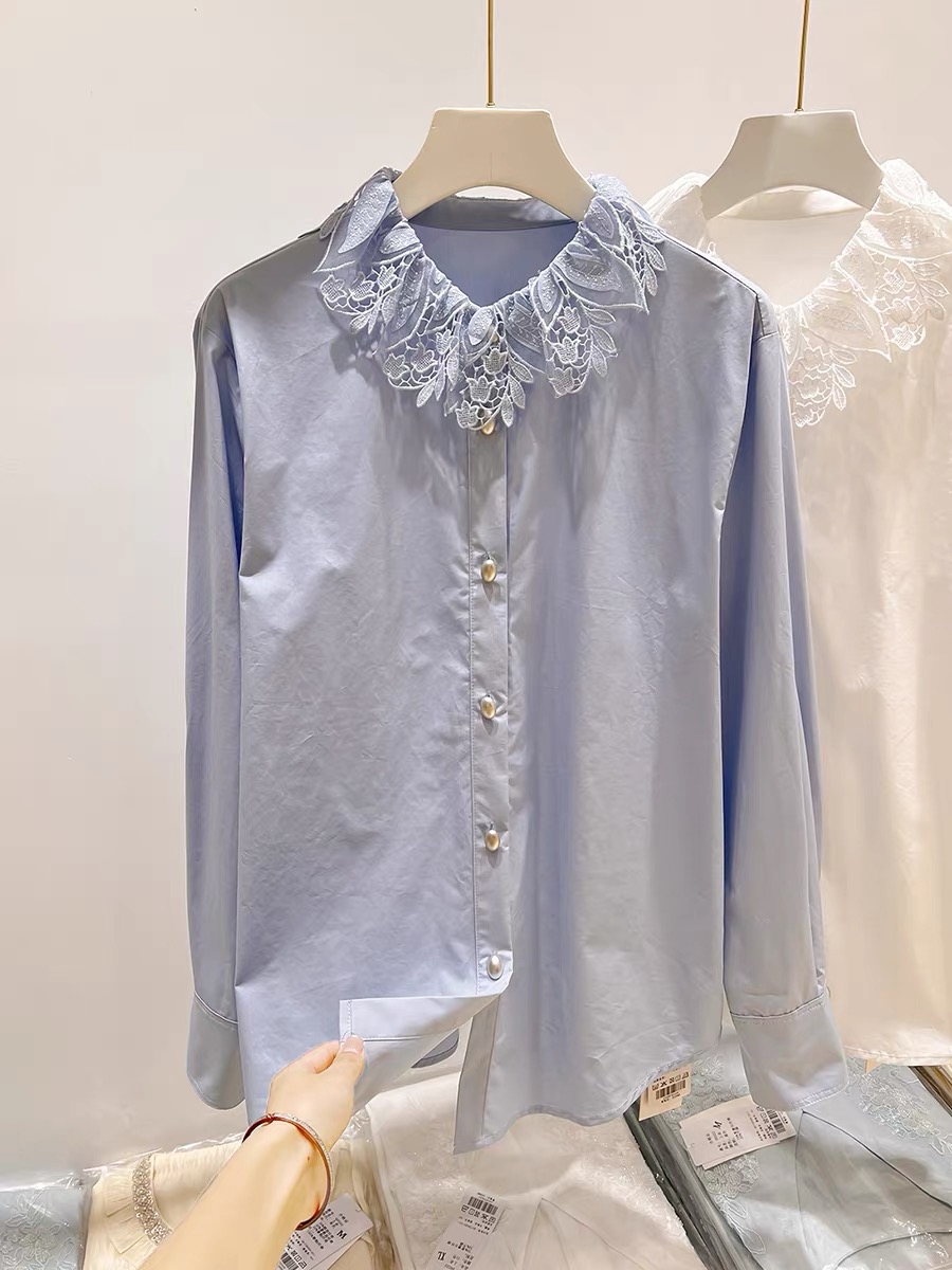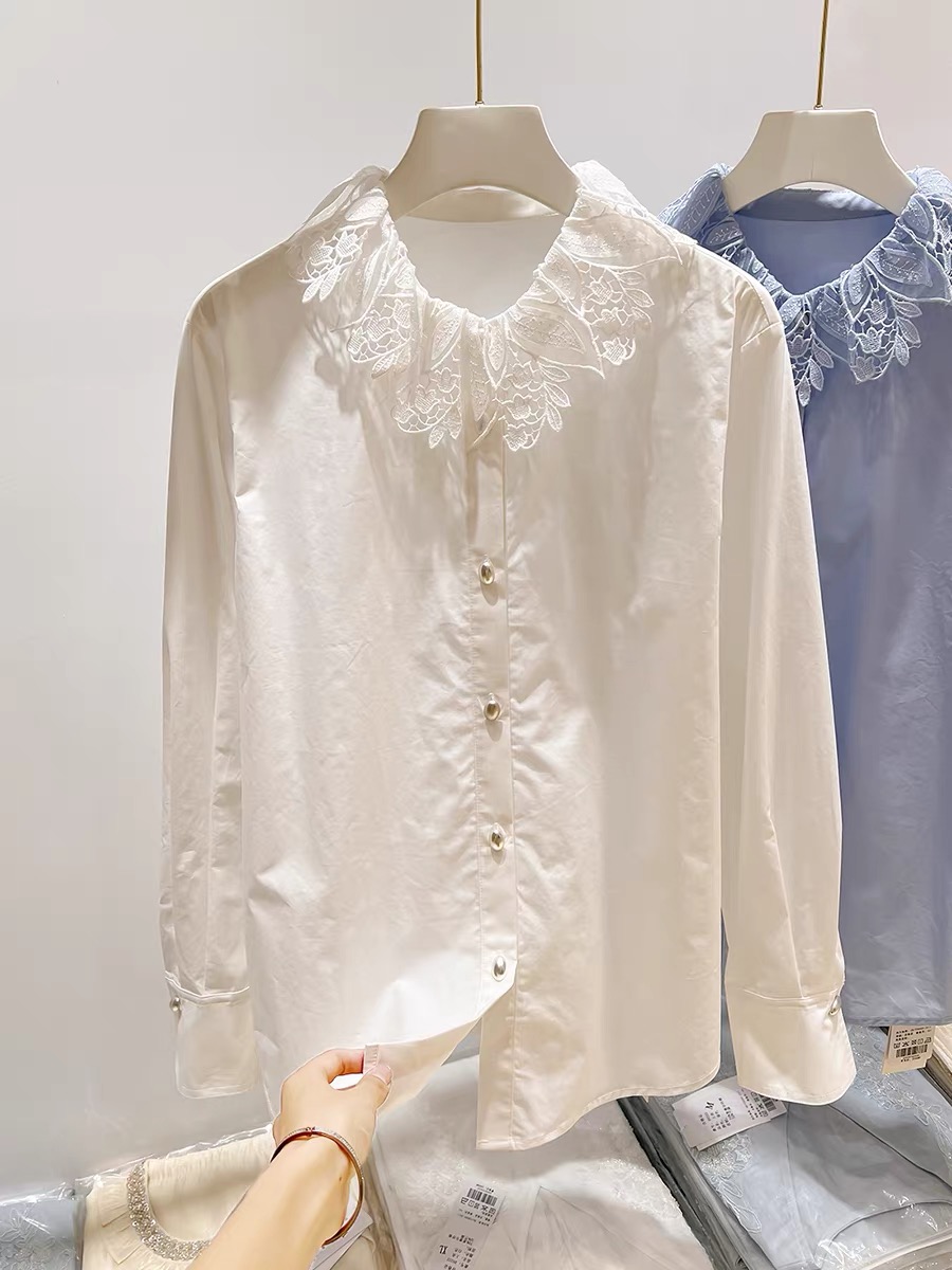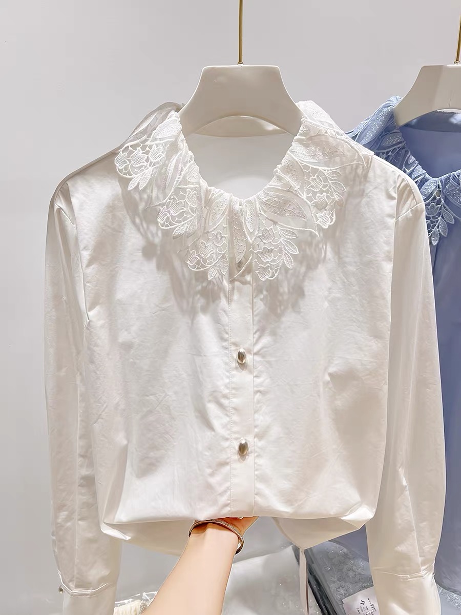 BY10545# 领子刺绣拼接纯色单排扣衬衫 服裝批發女裝批發服飾貨源